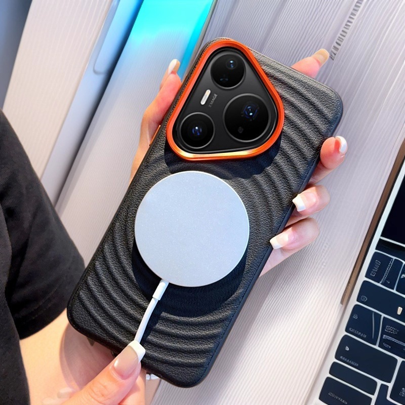 适用华为Pura80ultra皮革波漾手机壳Mate70立体水波纹GTpro磁吸壳