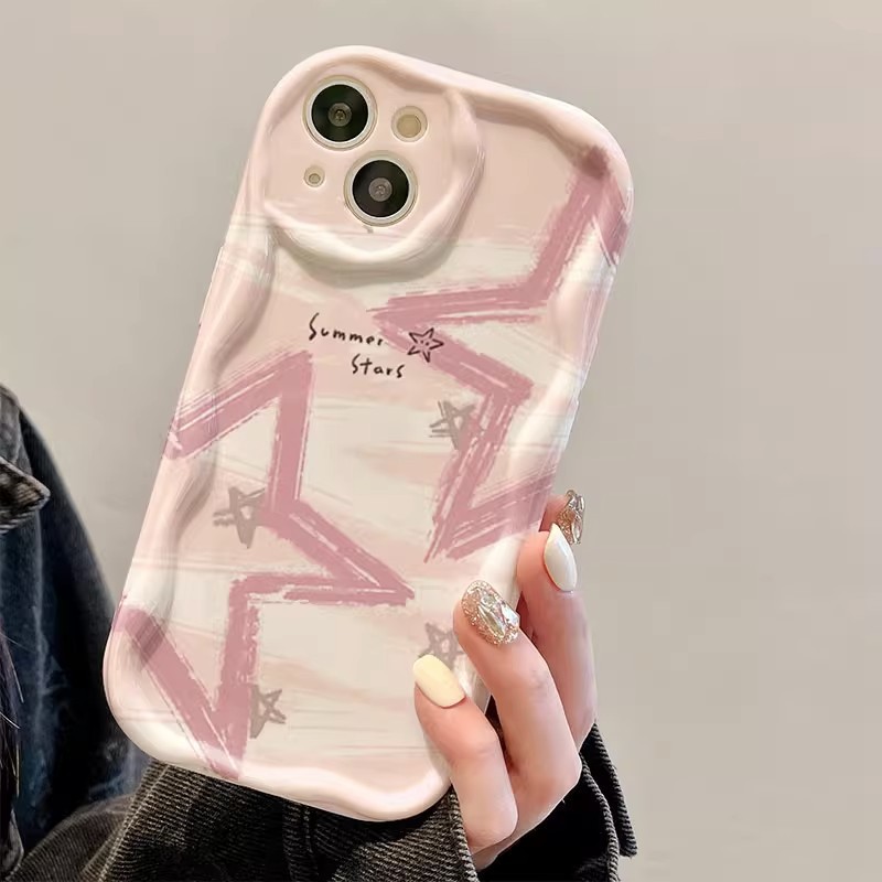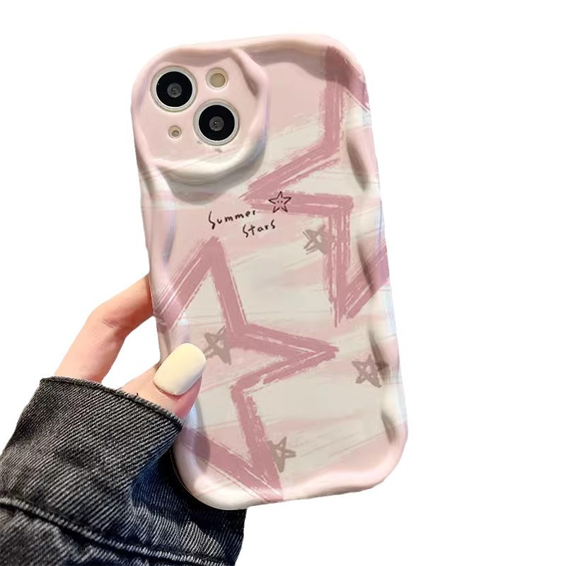 粉色五角星15promax手机壳mate60女款iPhone13全包软壳xs网红壳子
