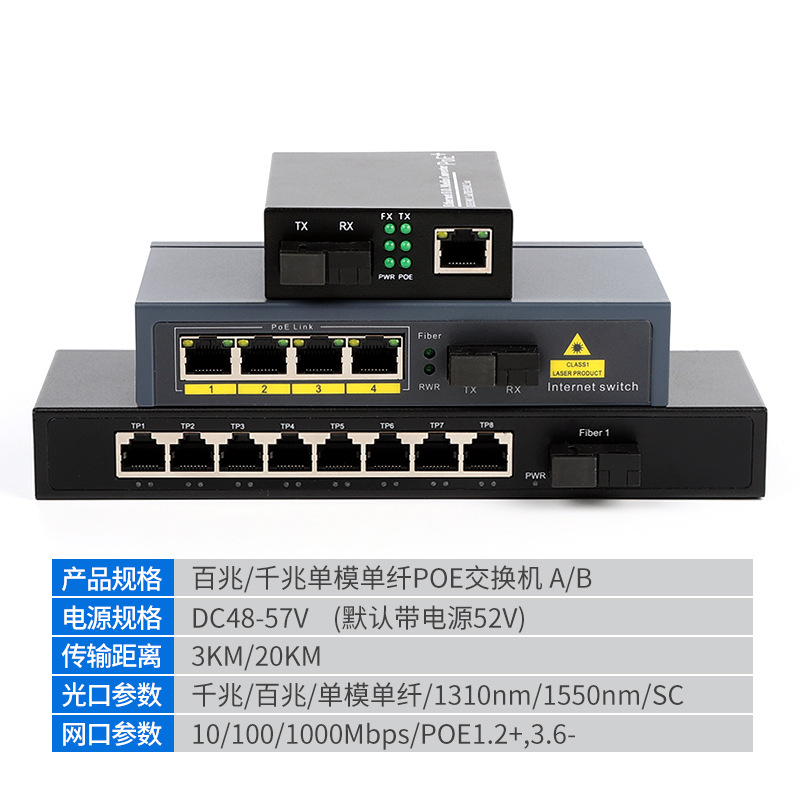 光纤收发器POE交换机千兆网线供电带光口5口8口百兆1光8电4电4口