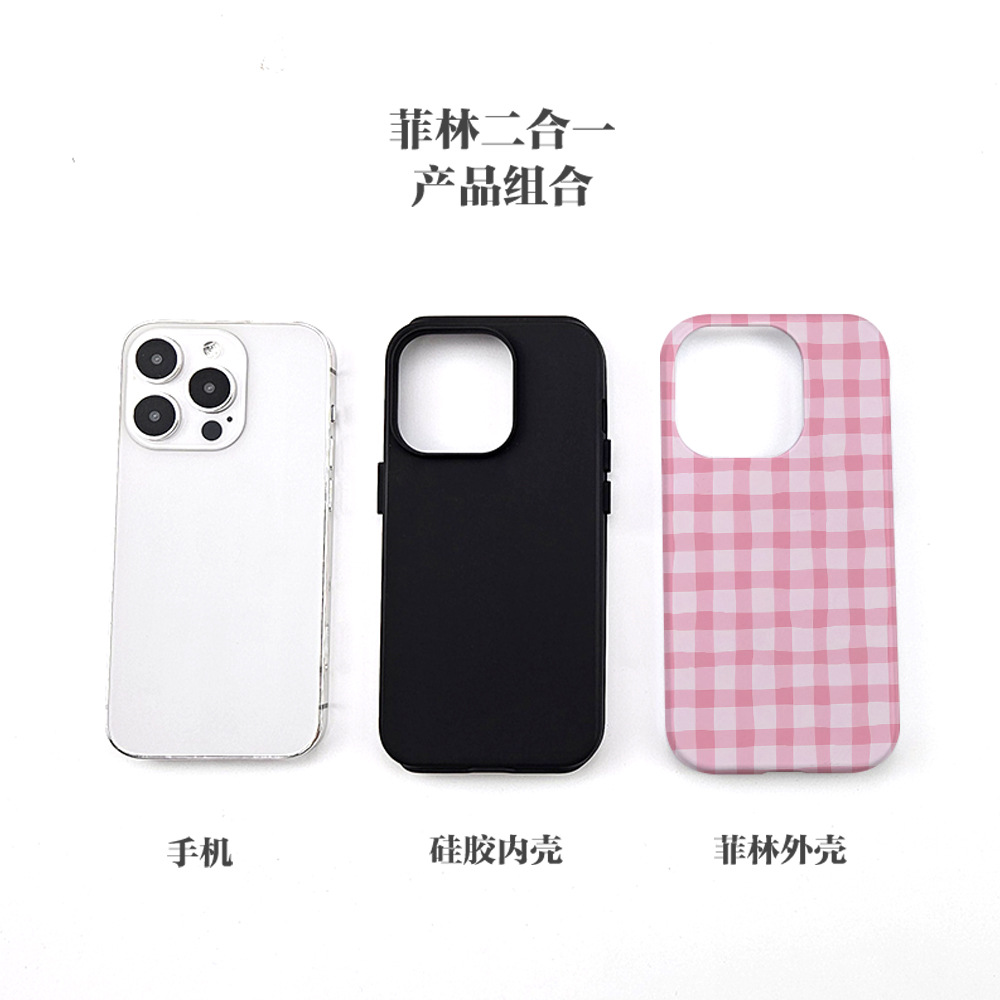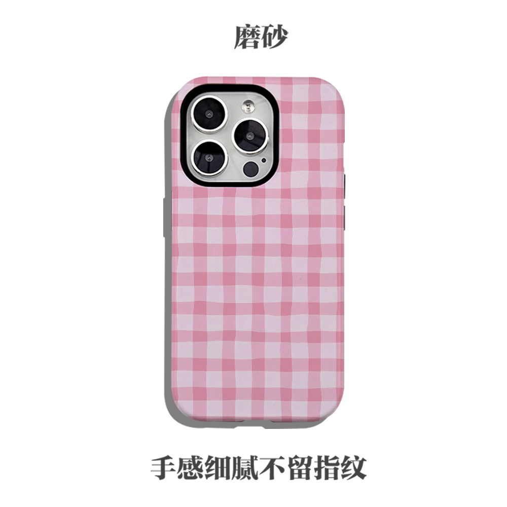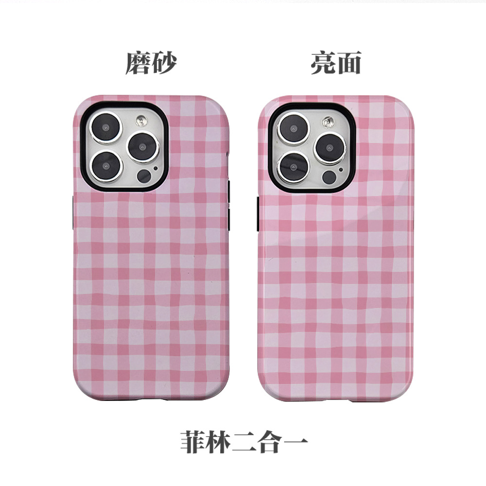 POD跨境简约粉色方格大孔精孔二合一菲林全包手机壳适用于苹果16p