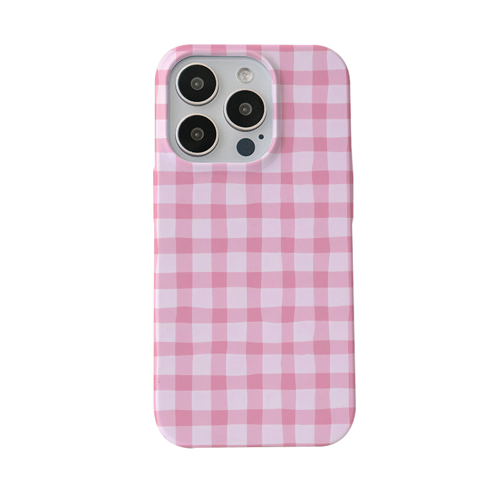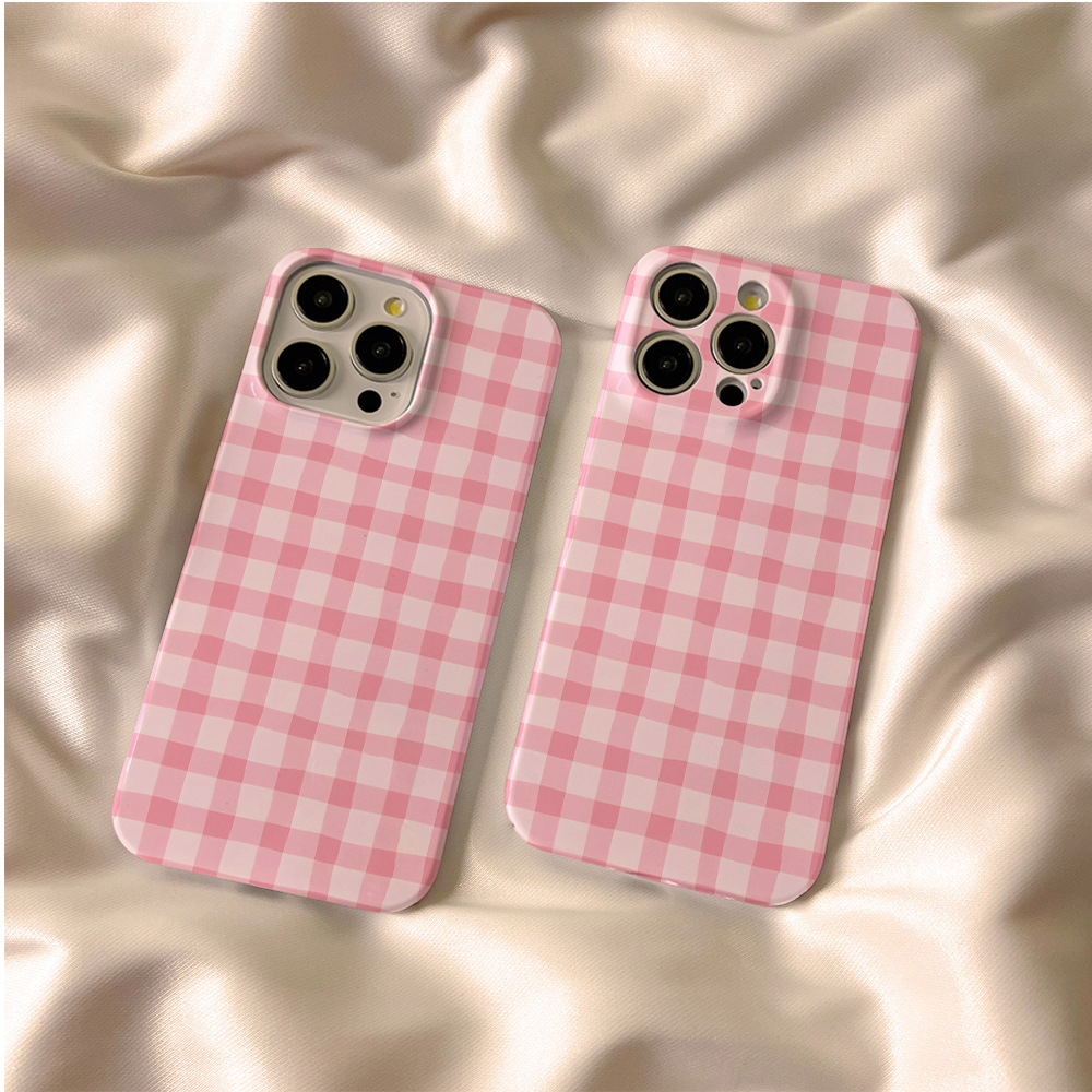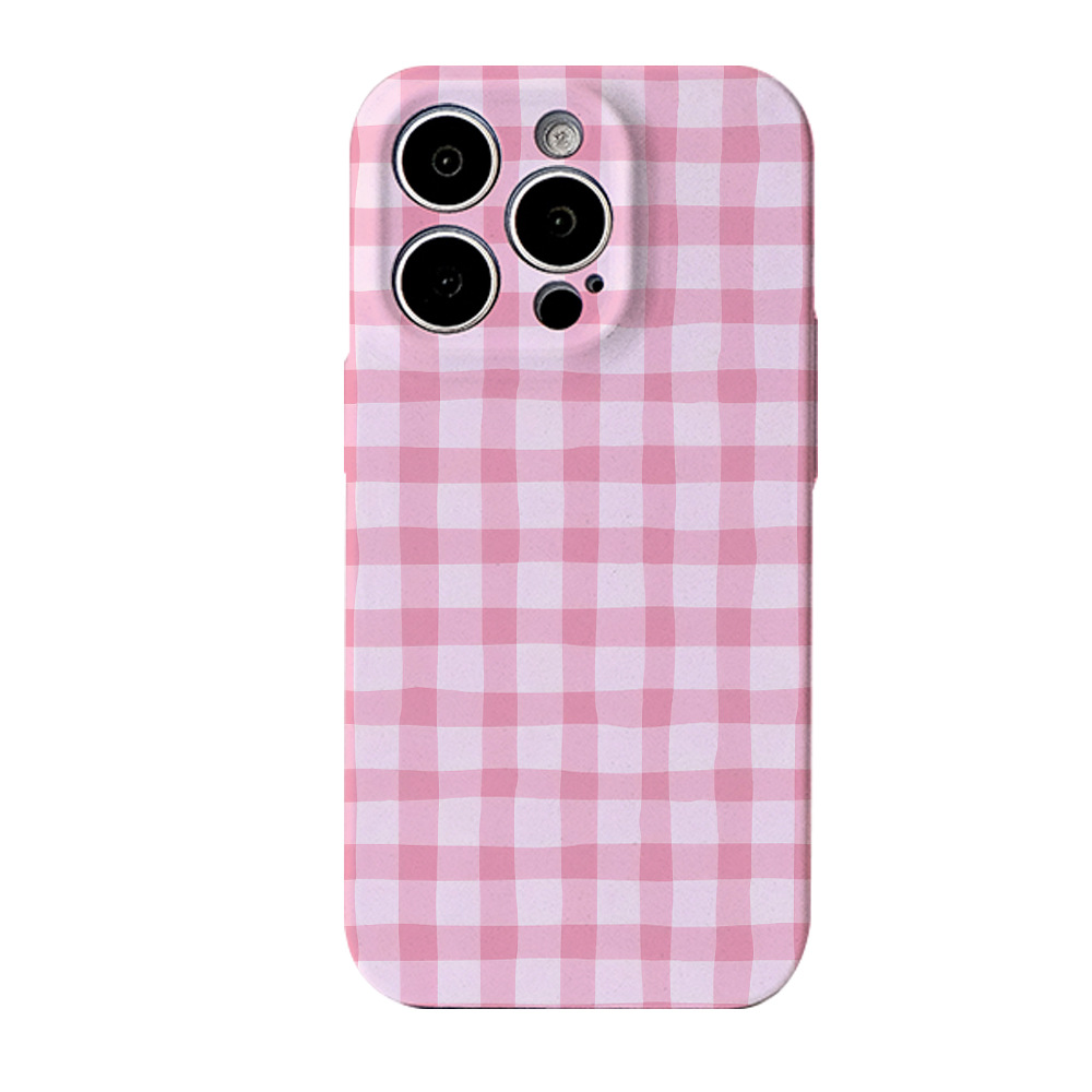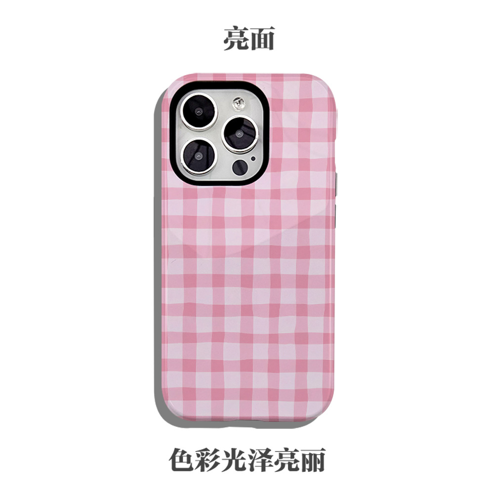 POD跨境简约粉色方格大孔精孔二合一菲林全包手机壳适用于苹果16p