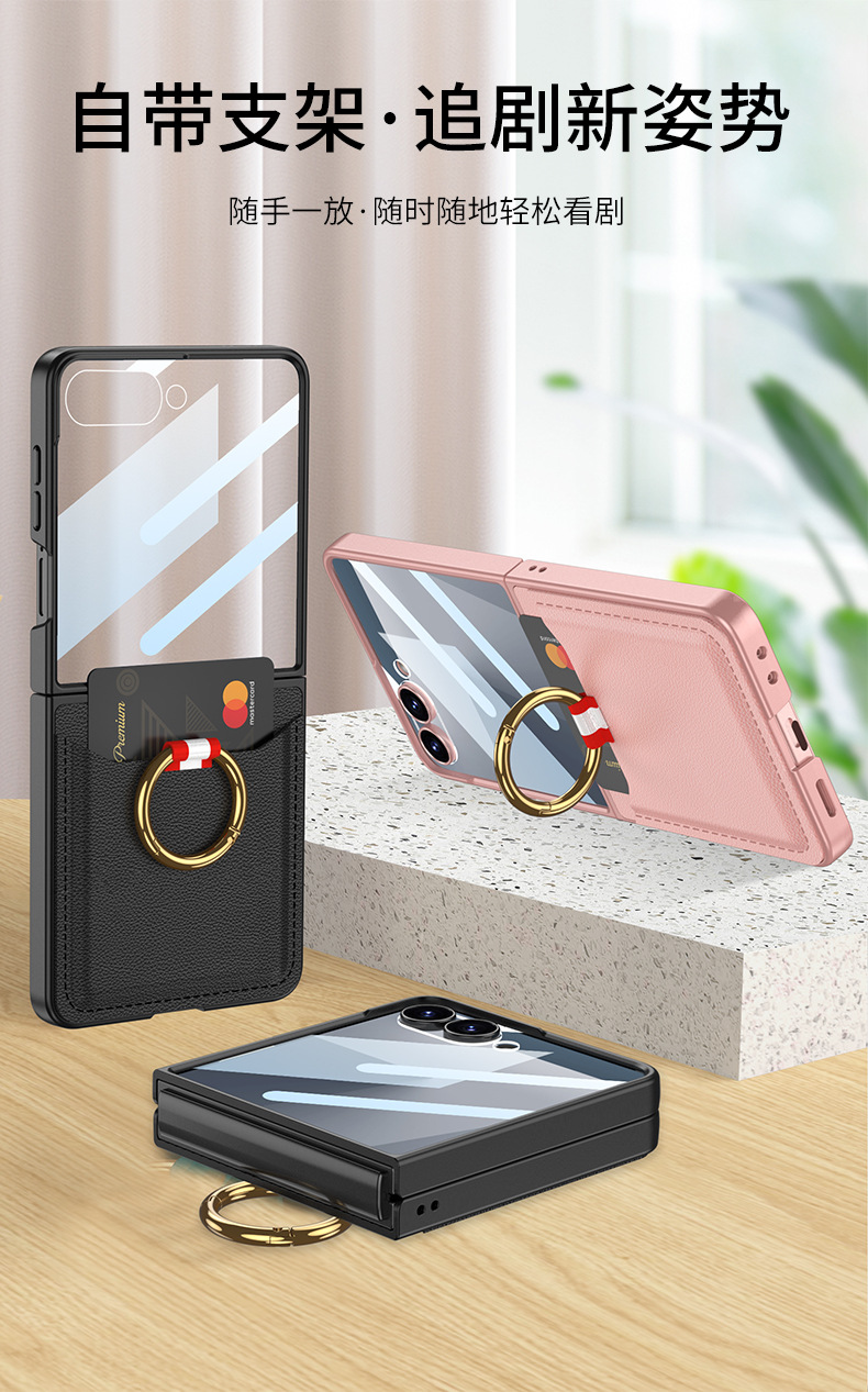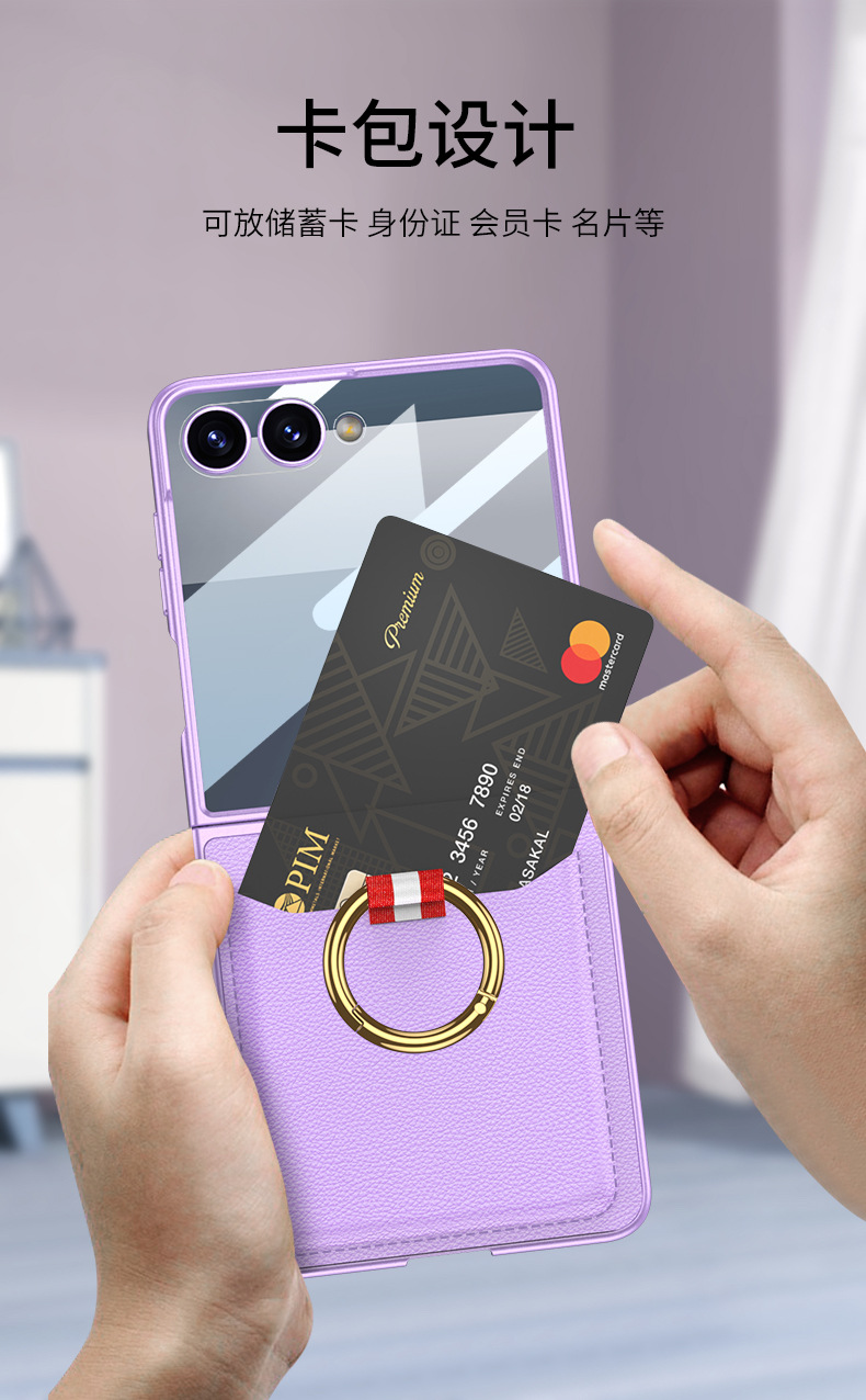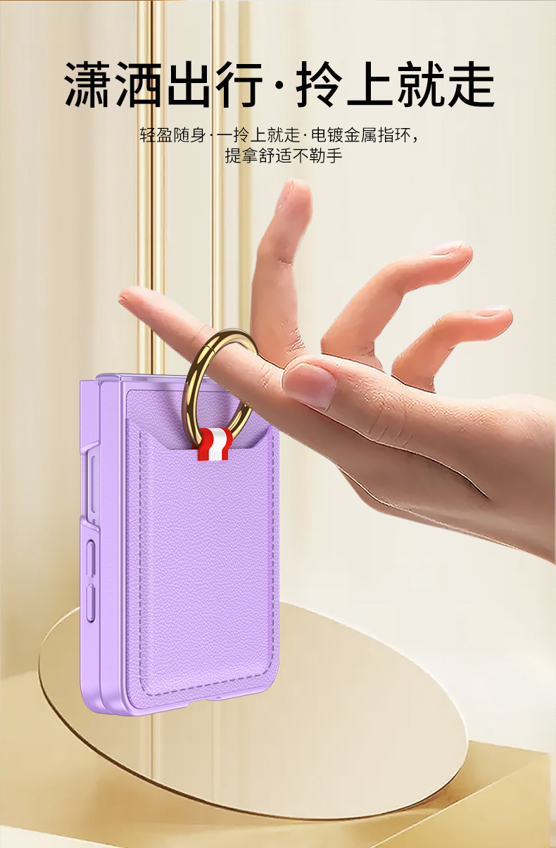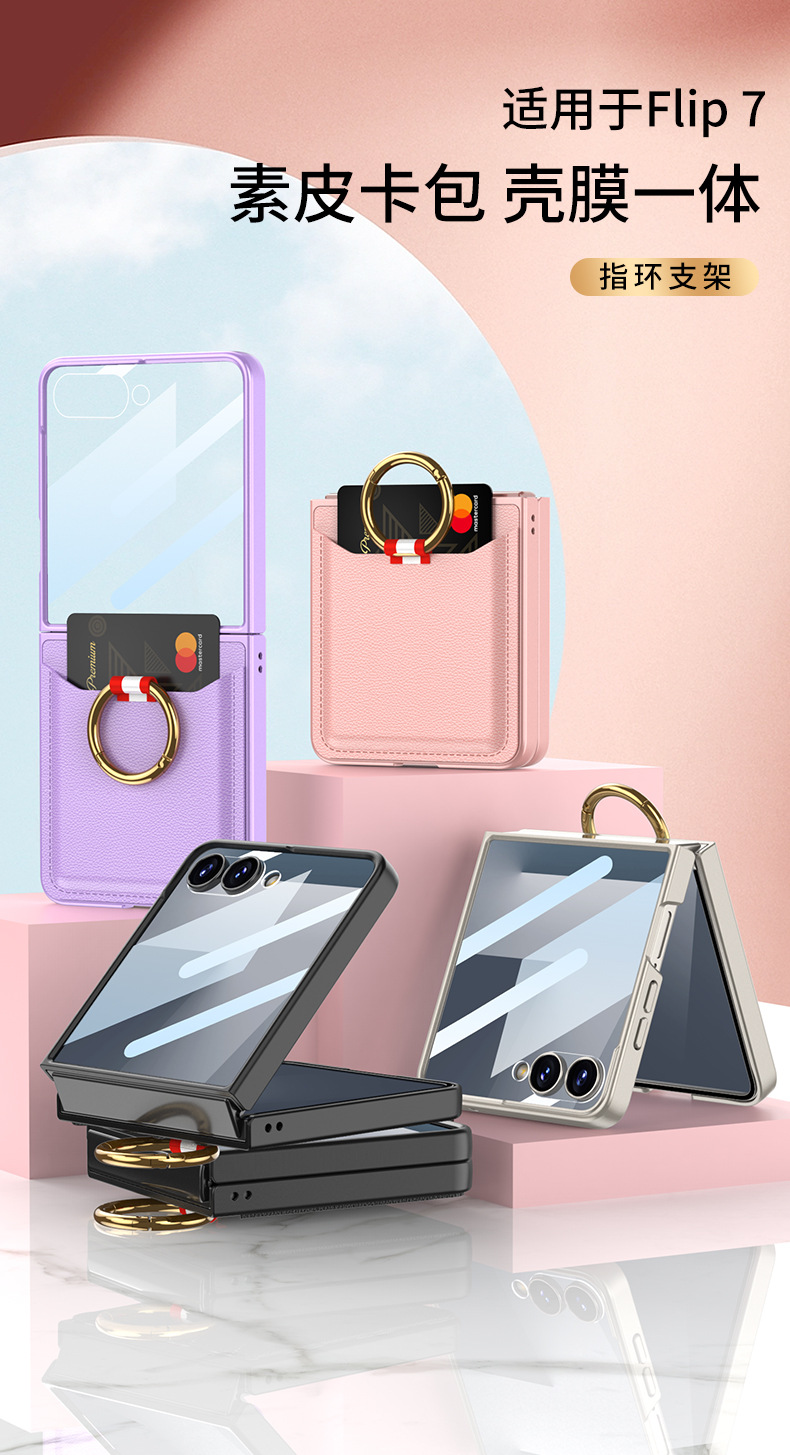 适用三星ZFlip7手机壳超薄卡包指环壳膜一体全包素皮防摔保护套