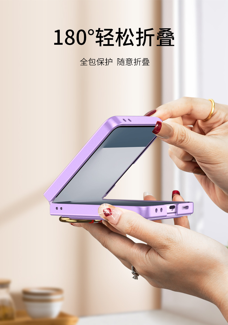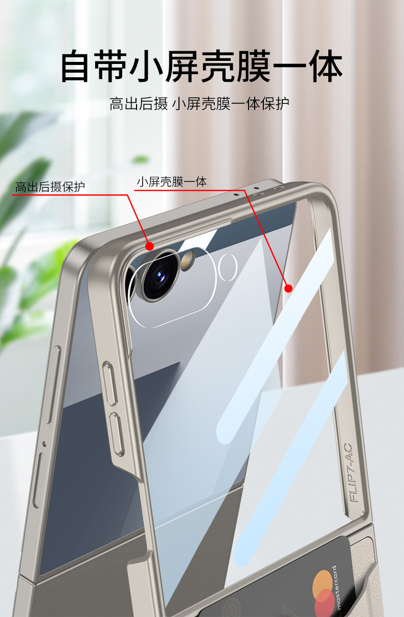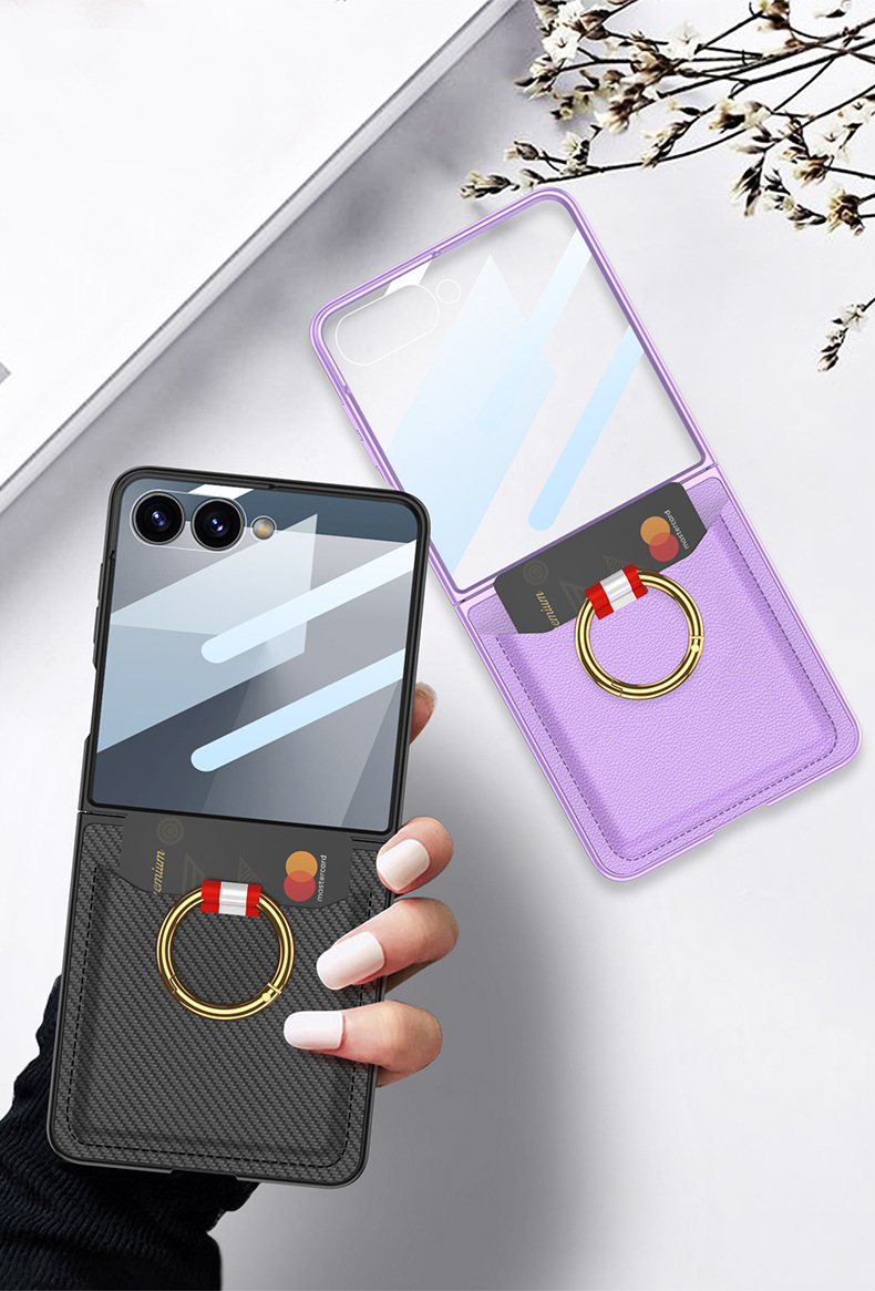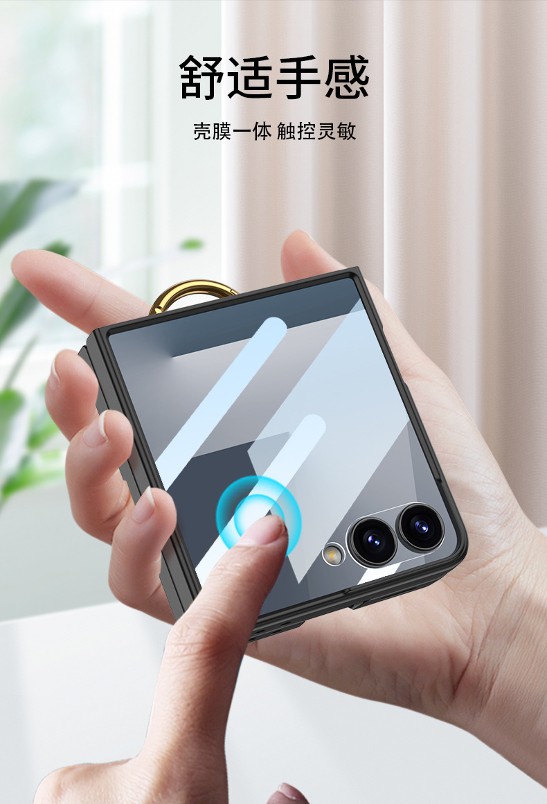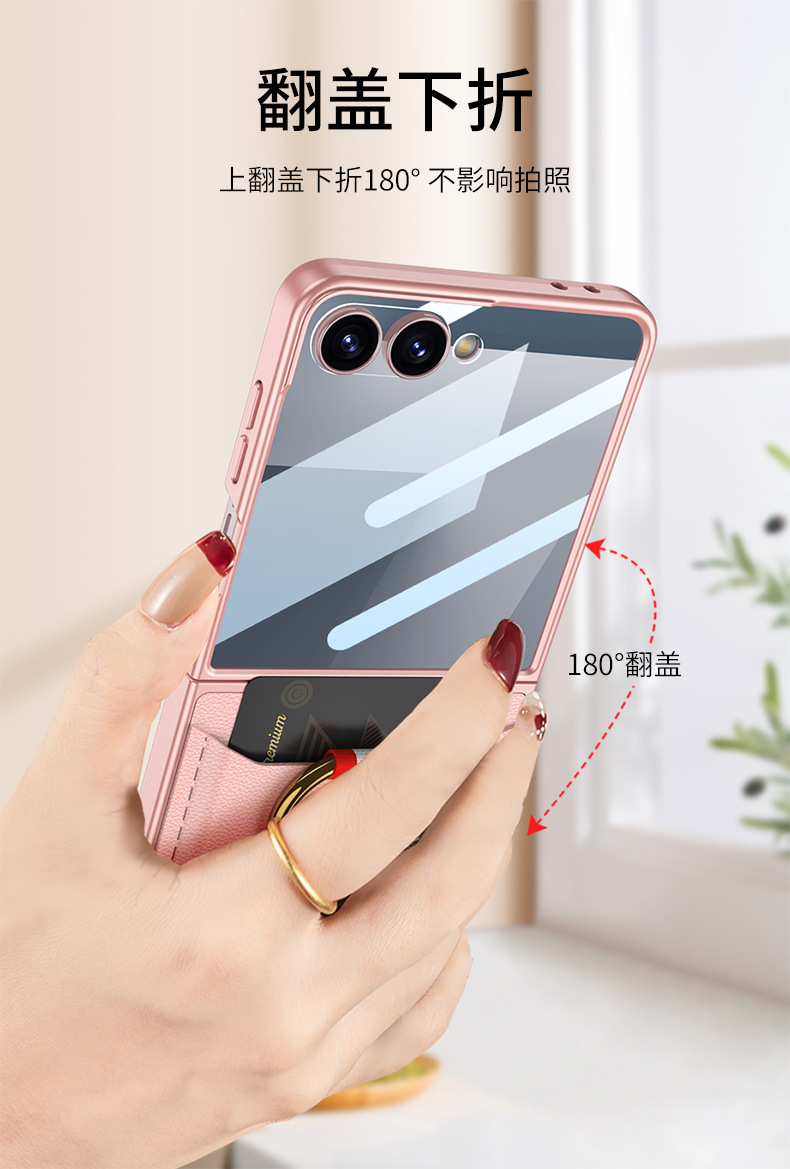 适用三星ZFlip7手机壳超薄卡包指环壳膜一体全包素皮防摔保护套