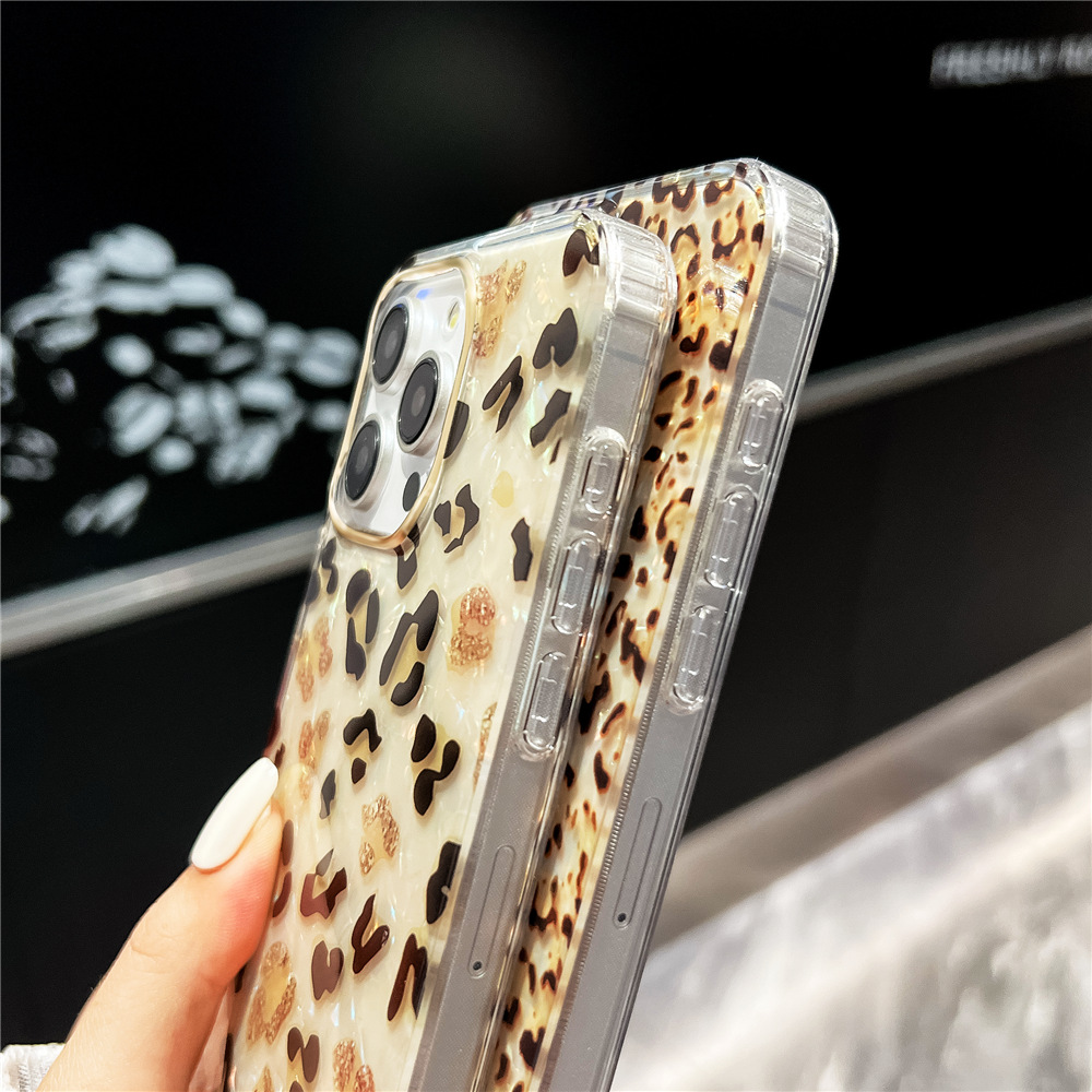 跨境适用于苹果16promax电镀贝壳纹手机壳iphone14/13豹纹双层imd