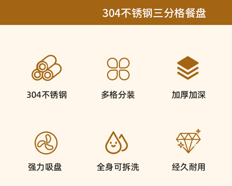新款可拆卸母婴用品餐盘辅食碗食品级硅胶304不锈钢防摔儿童餐盘
