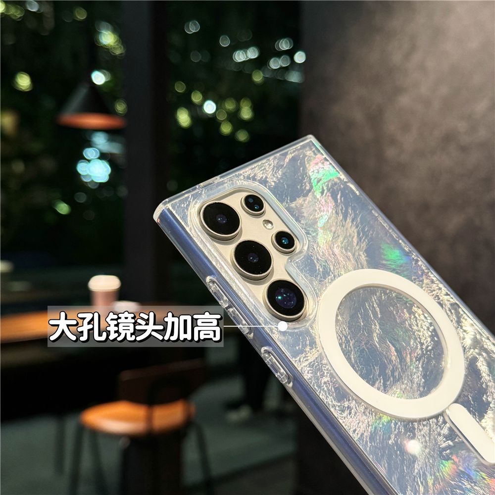 适用三星s25手机壳高级感炫彩渐变s24fe冰川纹磁吸壳S23plus防摔