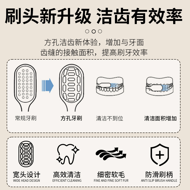 方孔密植净护软毛牙刷双支装