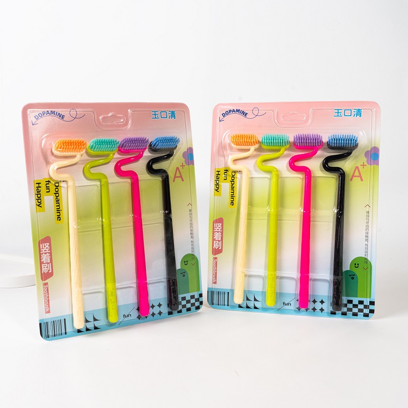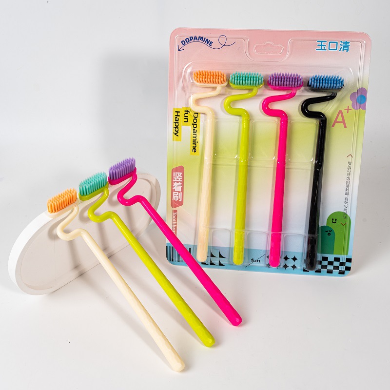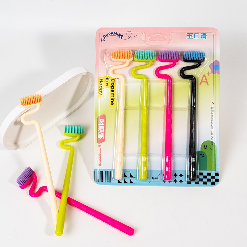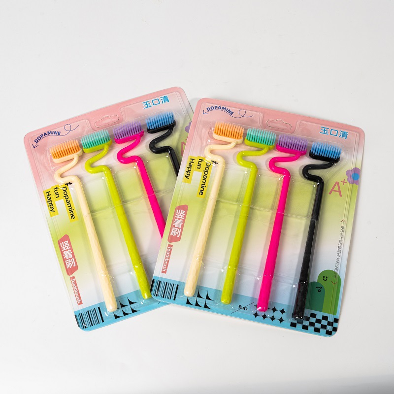 抖音爆款日用品S型牙刷异型竖刷独立包装家用清洁牙刷软毛高级牙