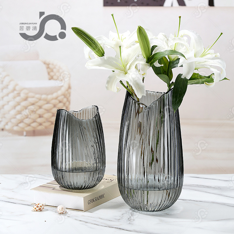 北欧创意弯月玻璃花瓶客厅雪柳百合玫瑰鲜花干花水培摆件装饰竖条