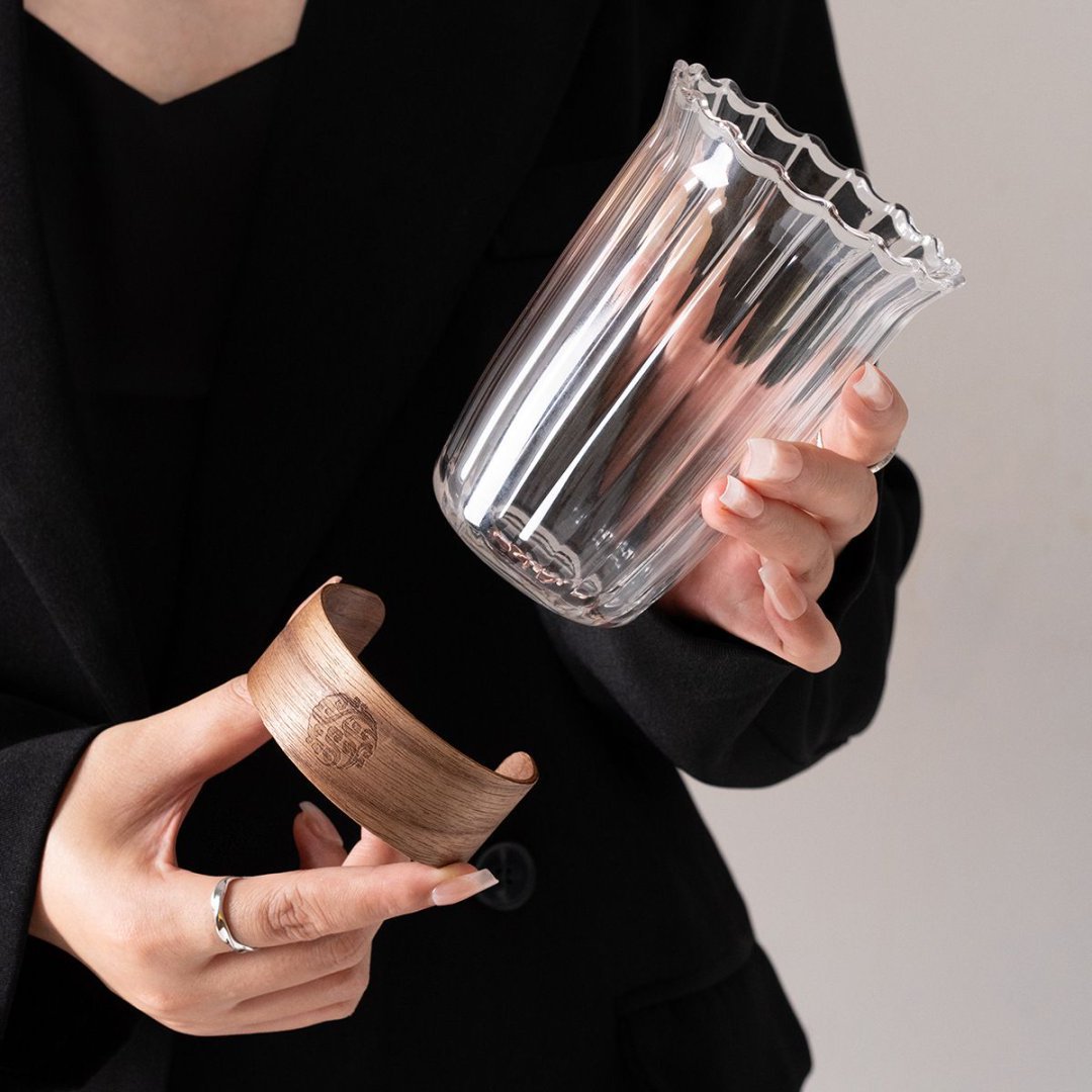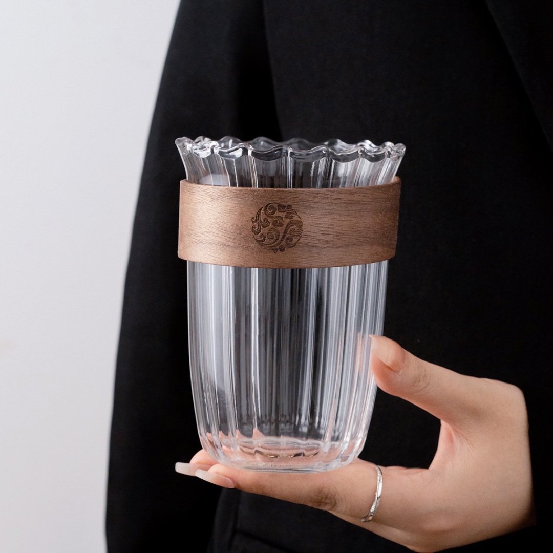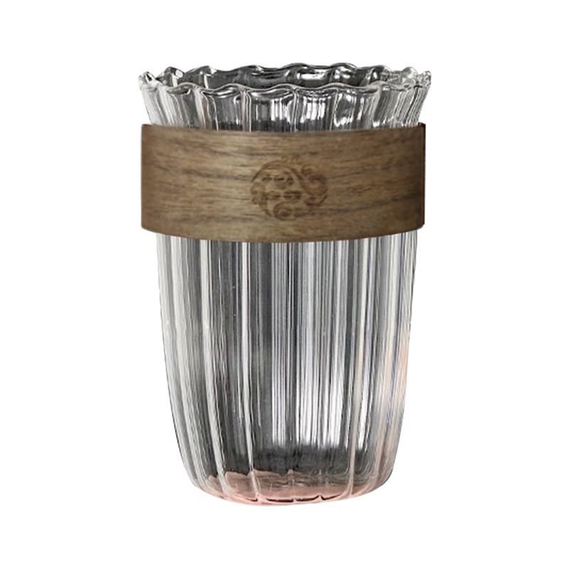 卷边竖纹玻璃水杯泡茶杯拿铁咖啡杯伴手礼杯子福利品奶茶杯牛奶杯