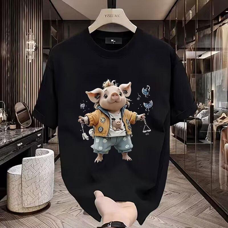 夏季新款美式痞帅短袖T恤男ins潮牌印花宽松圆领半袖休闲圆领上衣