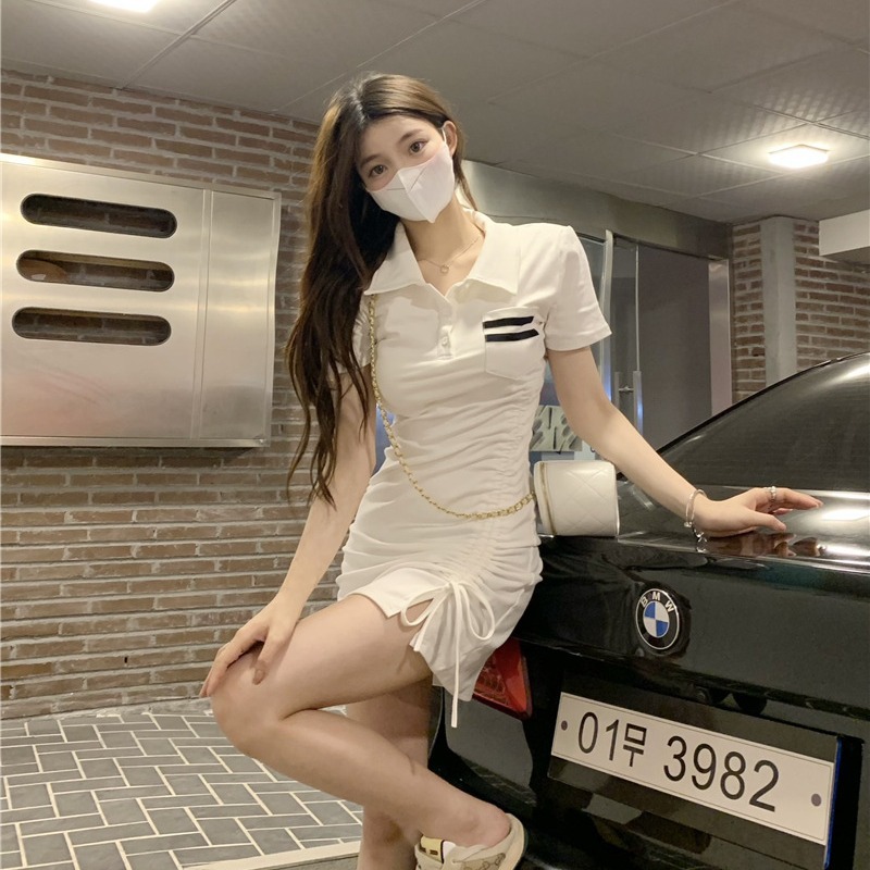 小个子冷淡风polo连衣裙女装夏季新款修身显瘦气质高级感抽绳裙子