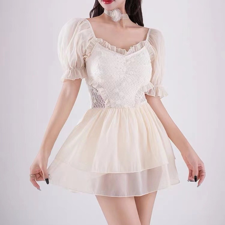 【在逃公主】高级感游泳衣女新款连体遮肚蕾丝性感温泉泳装女