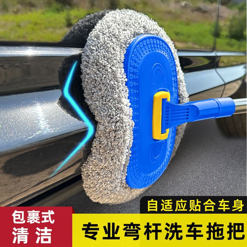 专业洗车拖把不伤车漆专用弯杆汽车长柄刷车软毛伸缩擦车工具