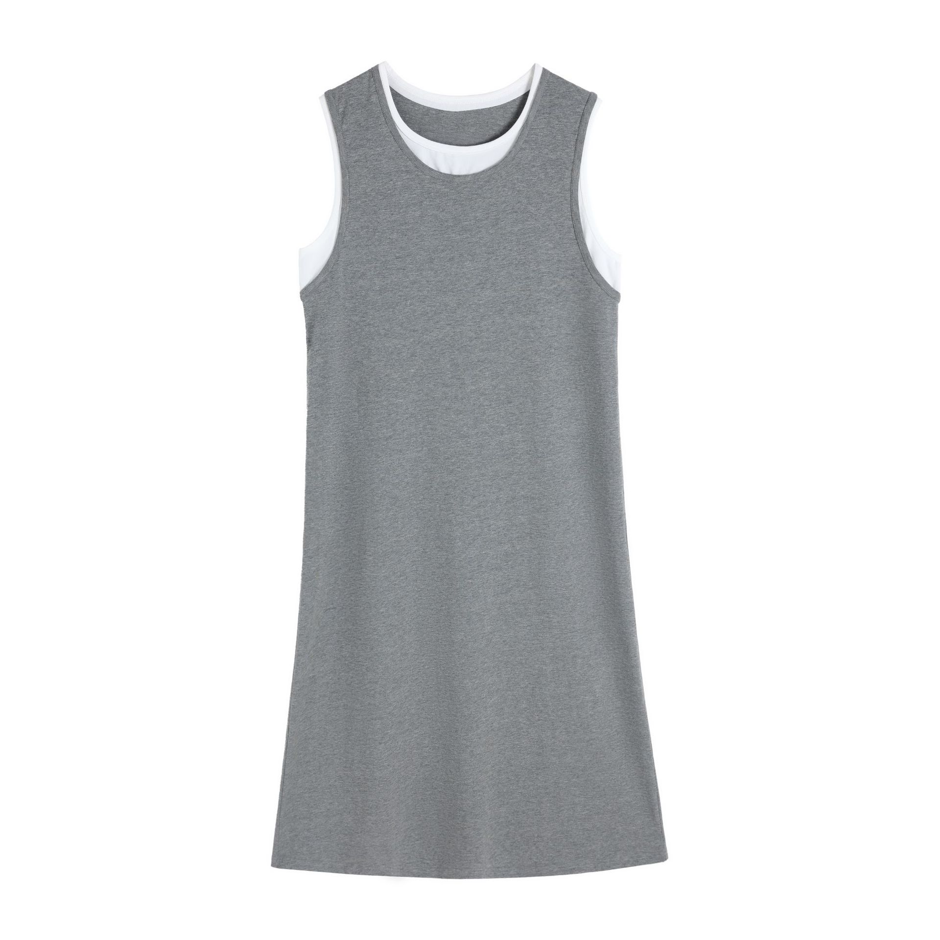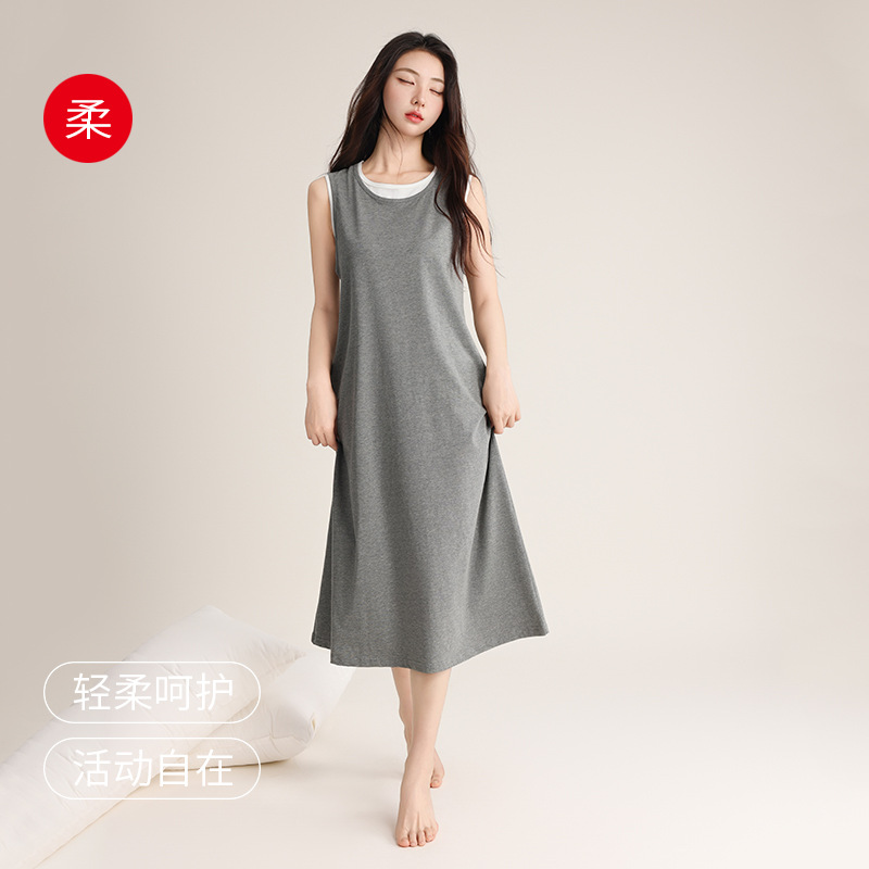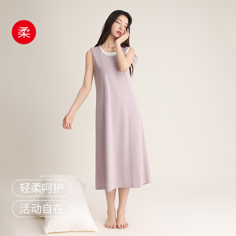 女士套头睡裙棉质假两件拼接睡衣高级感弹力可外穿家居服长裙