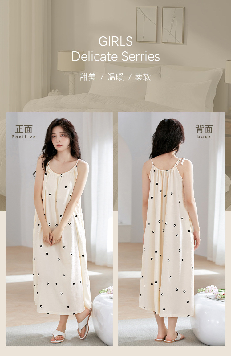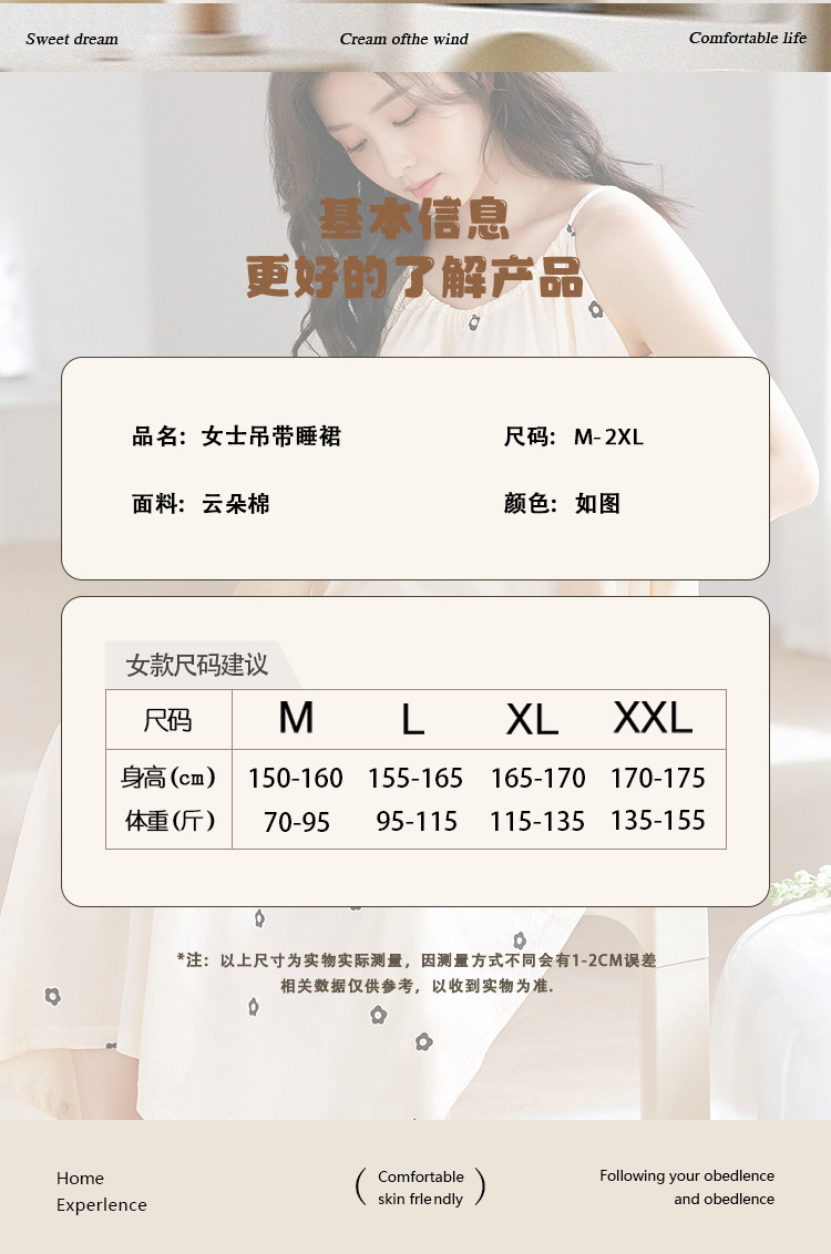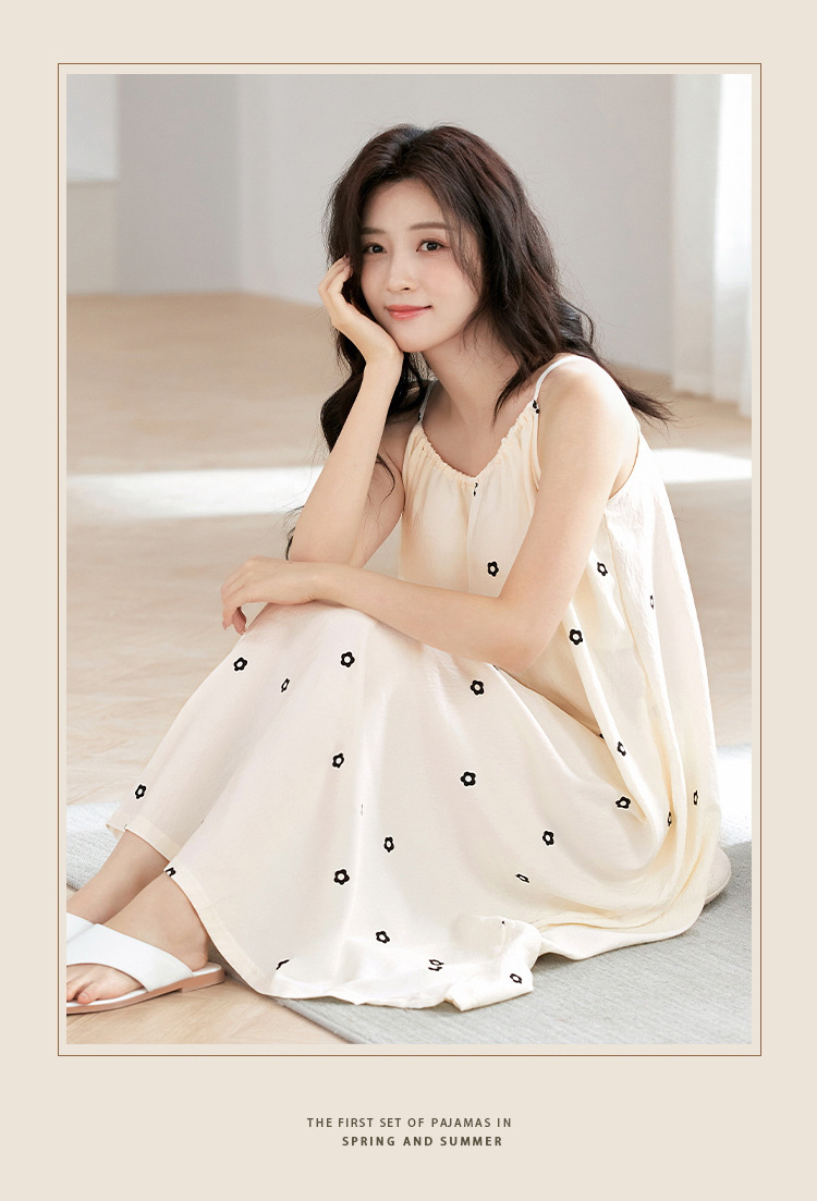 碎花云朵棉性感吊带带胸垫睡裙女无袖过膝睡衣可爱纯欲连衣裙