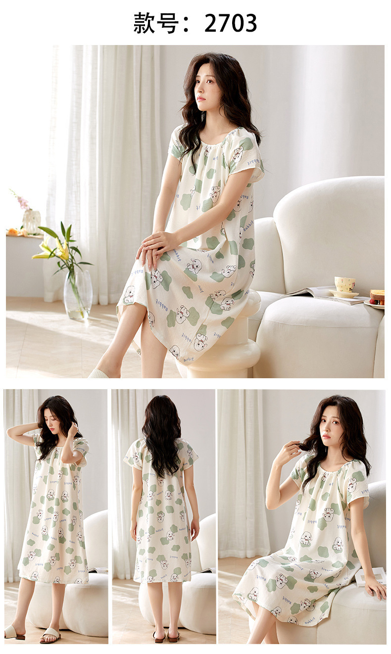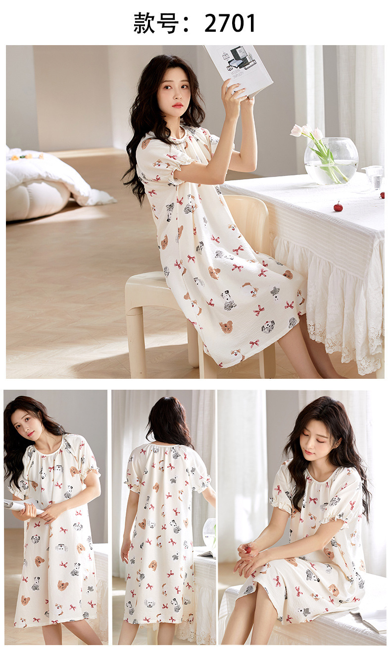 夏季新款女士短袖睡裙带胸垫云朵棉清新甜美仙女风中裙家居服裙子