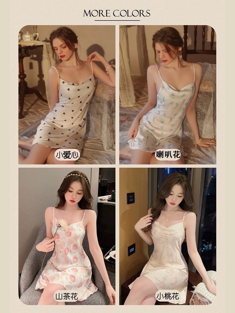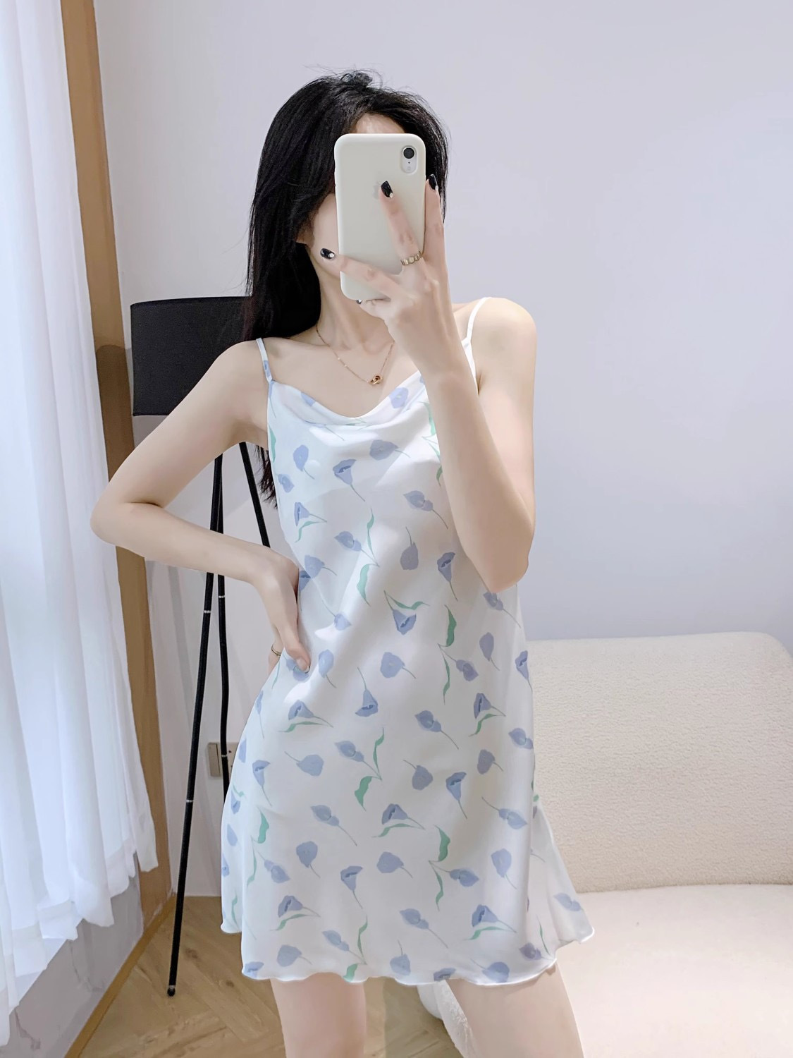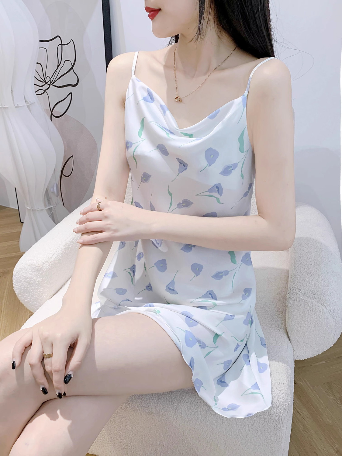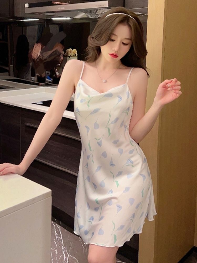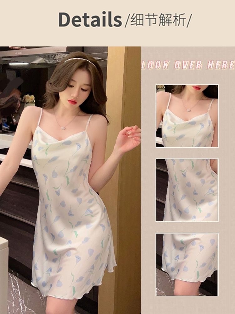 性感女睡衣高级感冰丝夏季纯欲风小碎花吊带睡裙