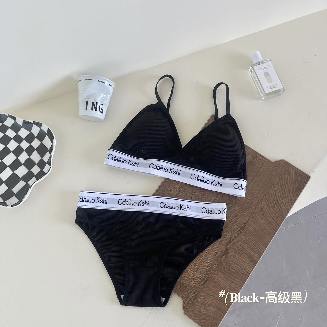 跨境外贸法式内衣女士三角杯无钢圈性感美背舒适聚拢文胸运动套装