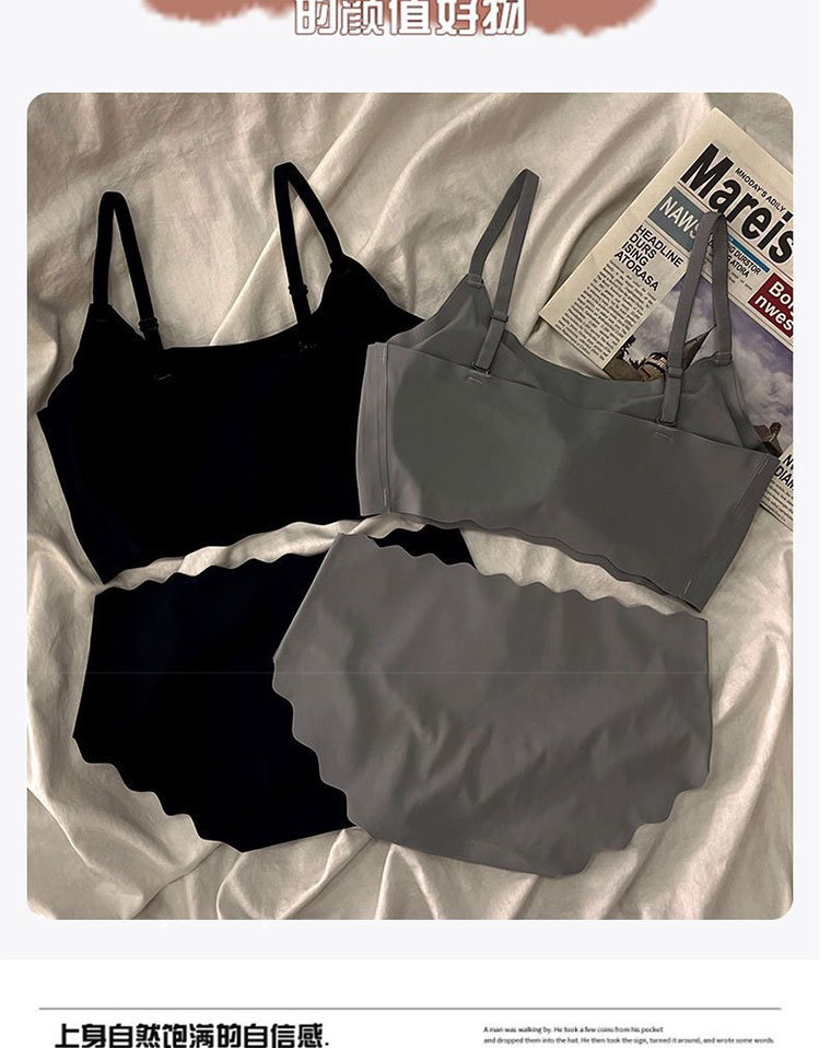 冰丝内衣套装少女学生无痕无钢圈聚拢运动日系吊带小背心显胸文胸
