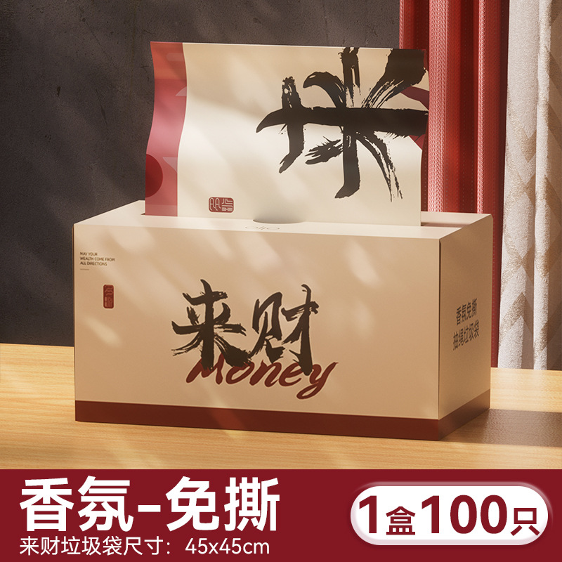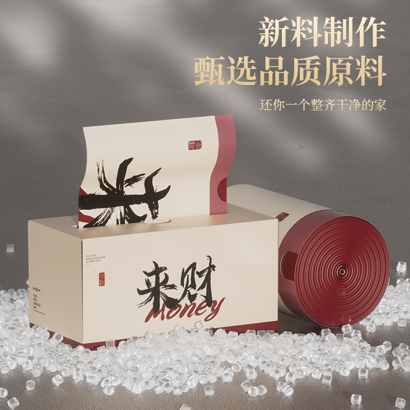 来财免撕垃圾袋抽绳式精品盒装自动收口加厚加大客厅厨余塑料袋