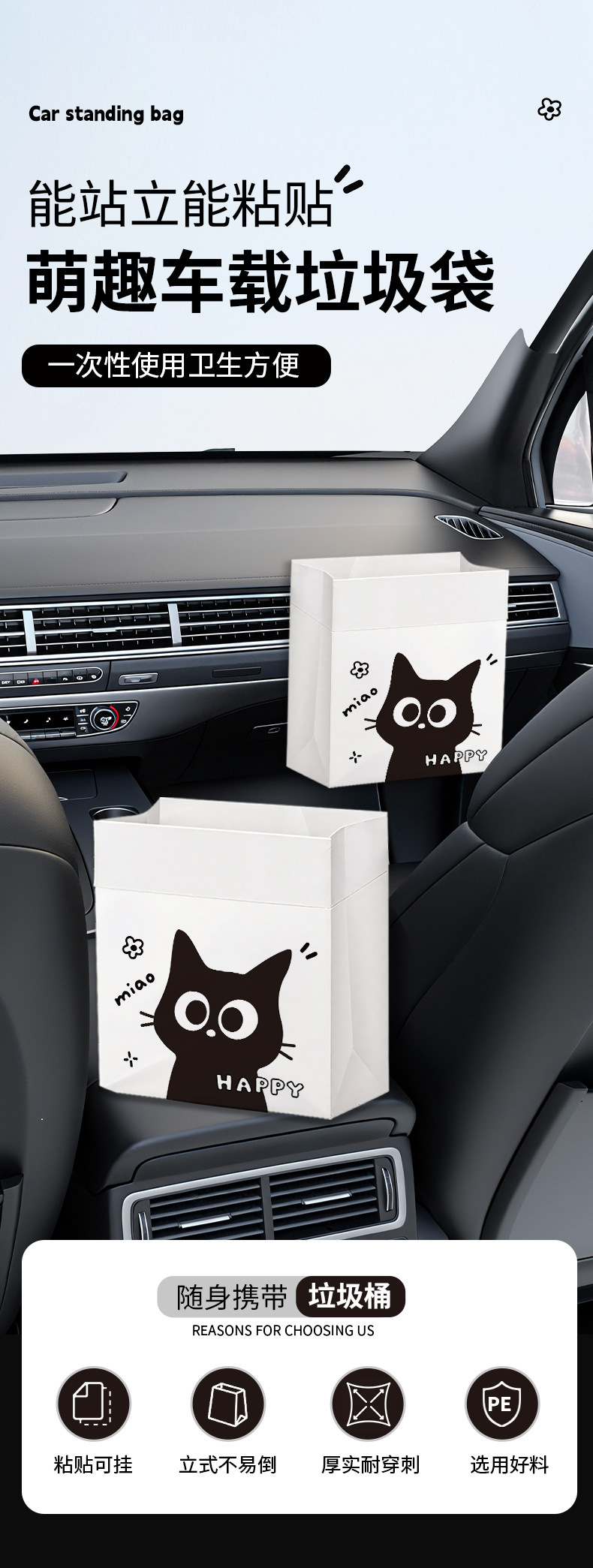 车载垃圾袋车立袋黑喵趣自立式粘贴式清洁袋桌面垃圾袋加厚厨房