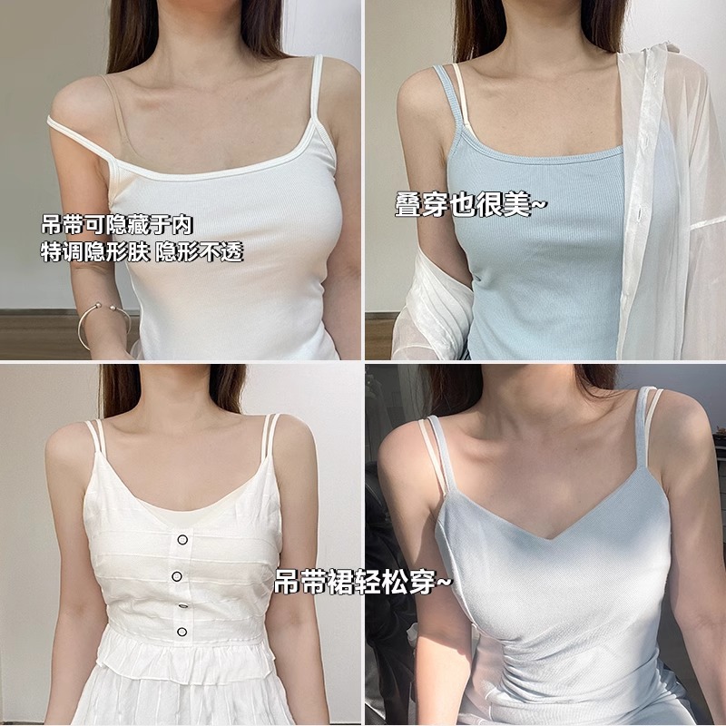 纯欲风冰丝背心带胸垫吊带背心夏季短款清凉奶油色系美背女外穿