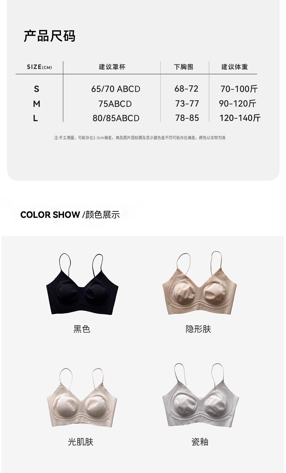 轻薄透气粉底液隐形内衣细肩带抹胸文胸夏季薄款
