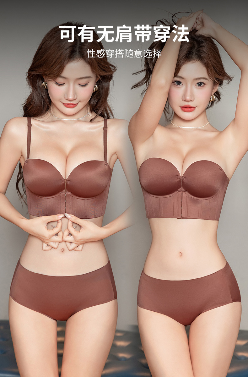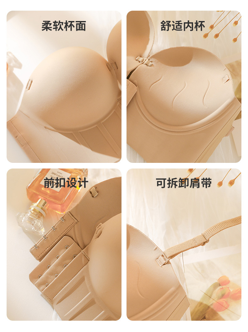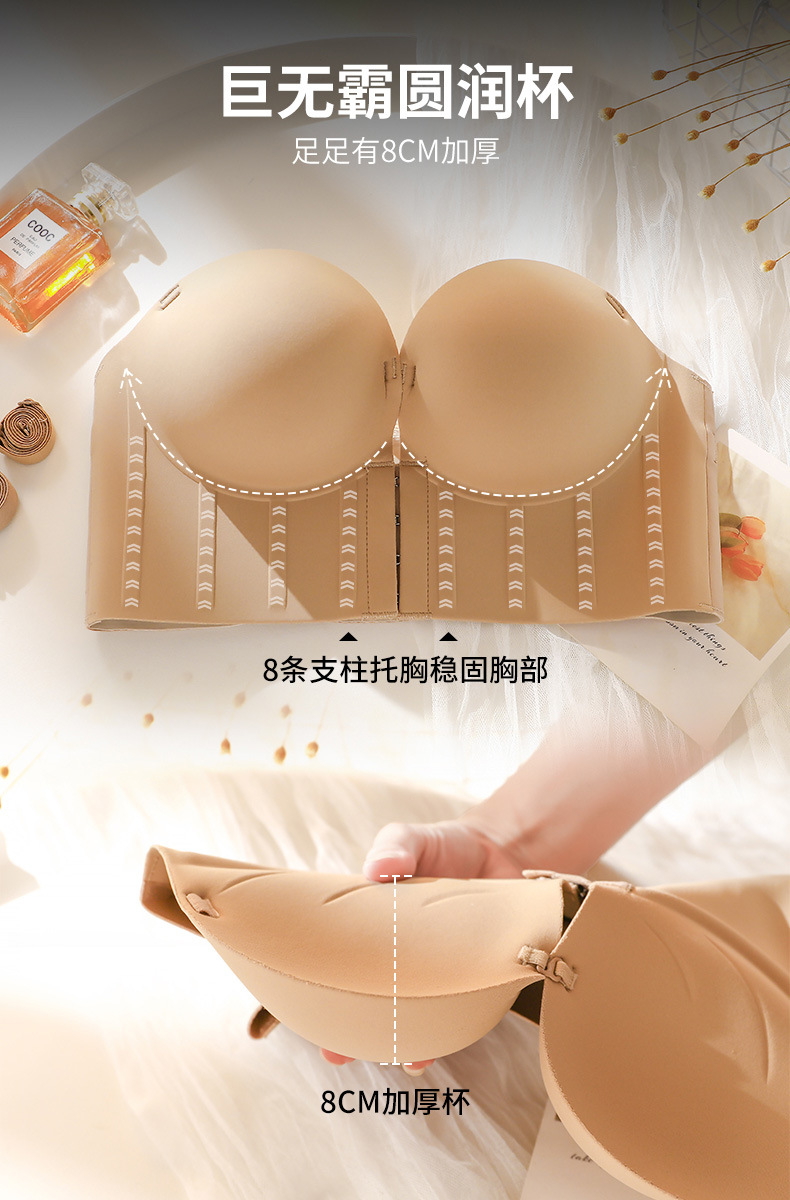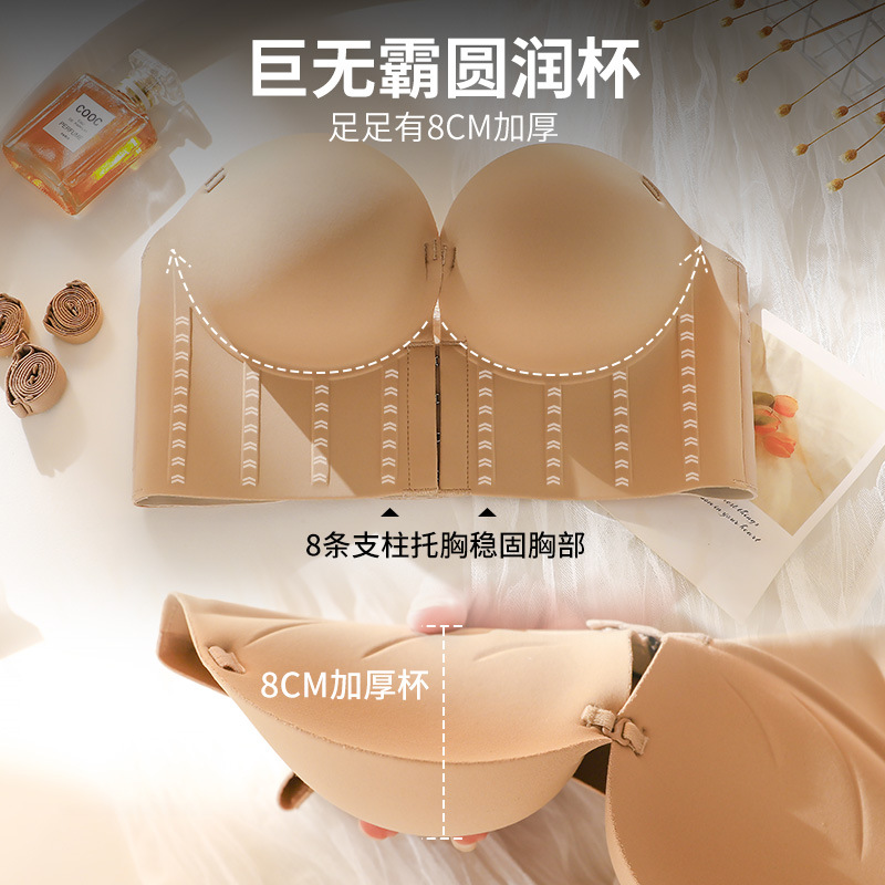 春夏加厚8cm前扣隐形无钢圈内衣小平胸性感聚拢侧收女文胸罩批发