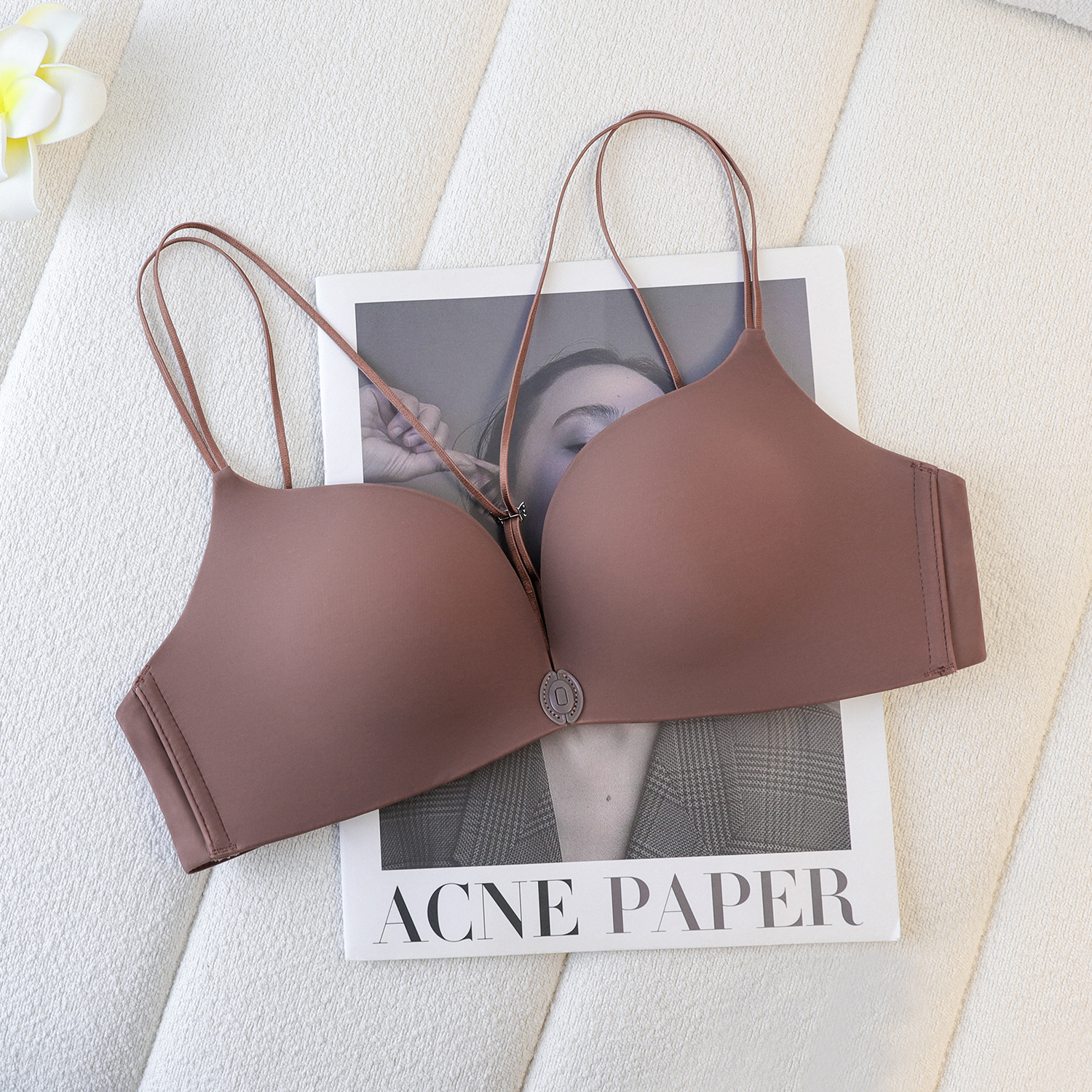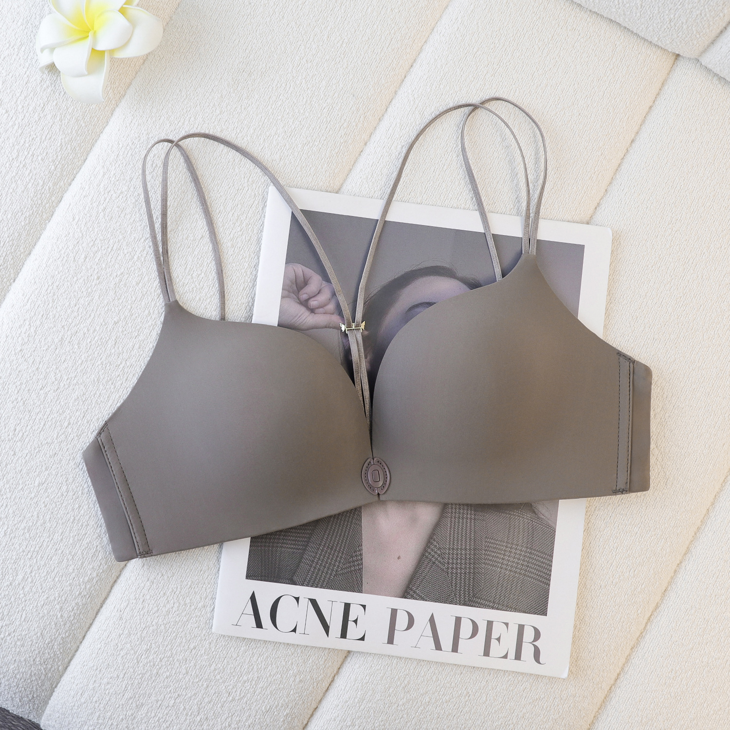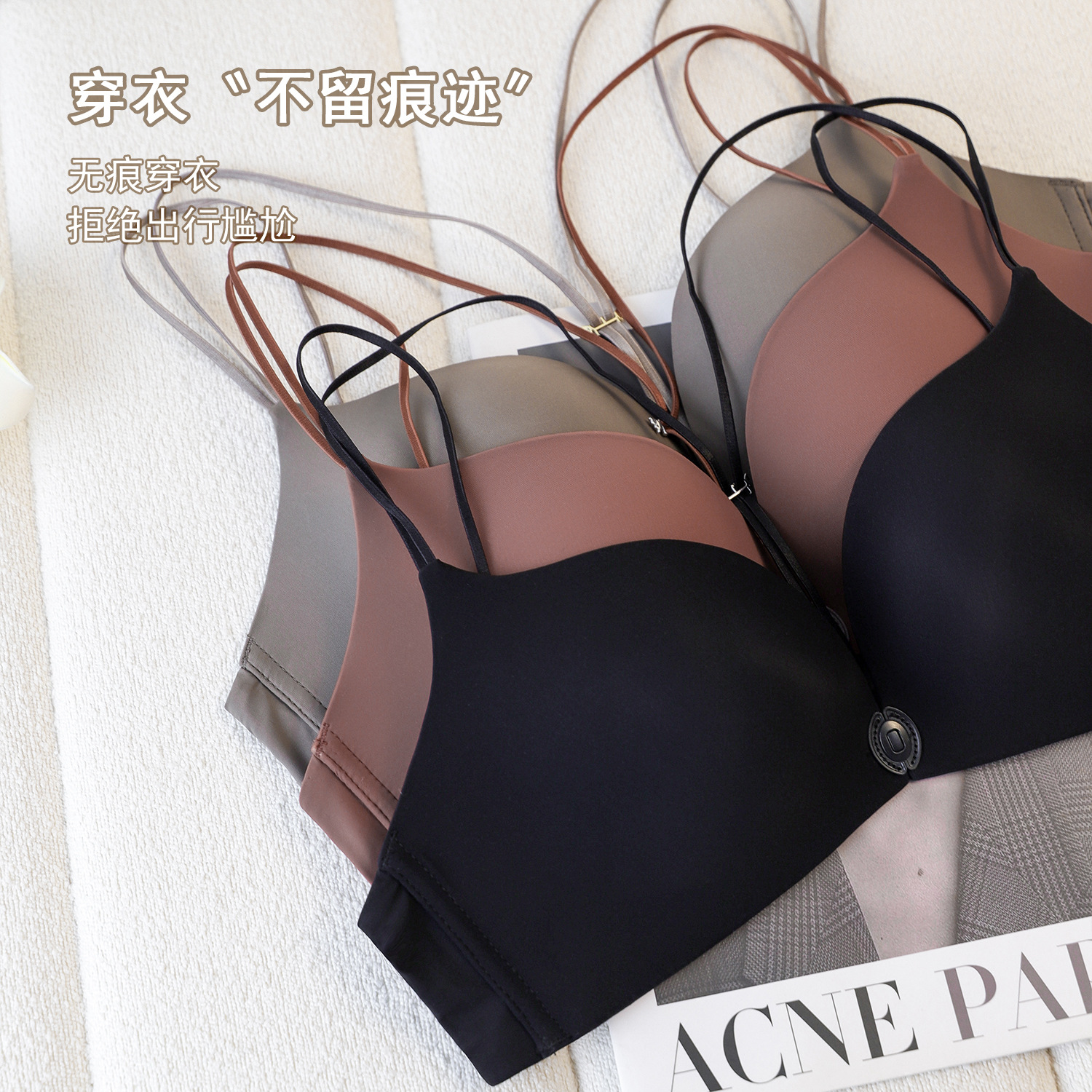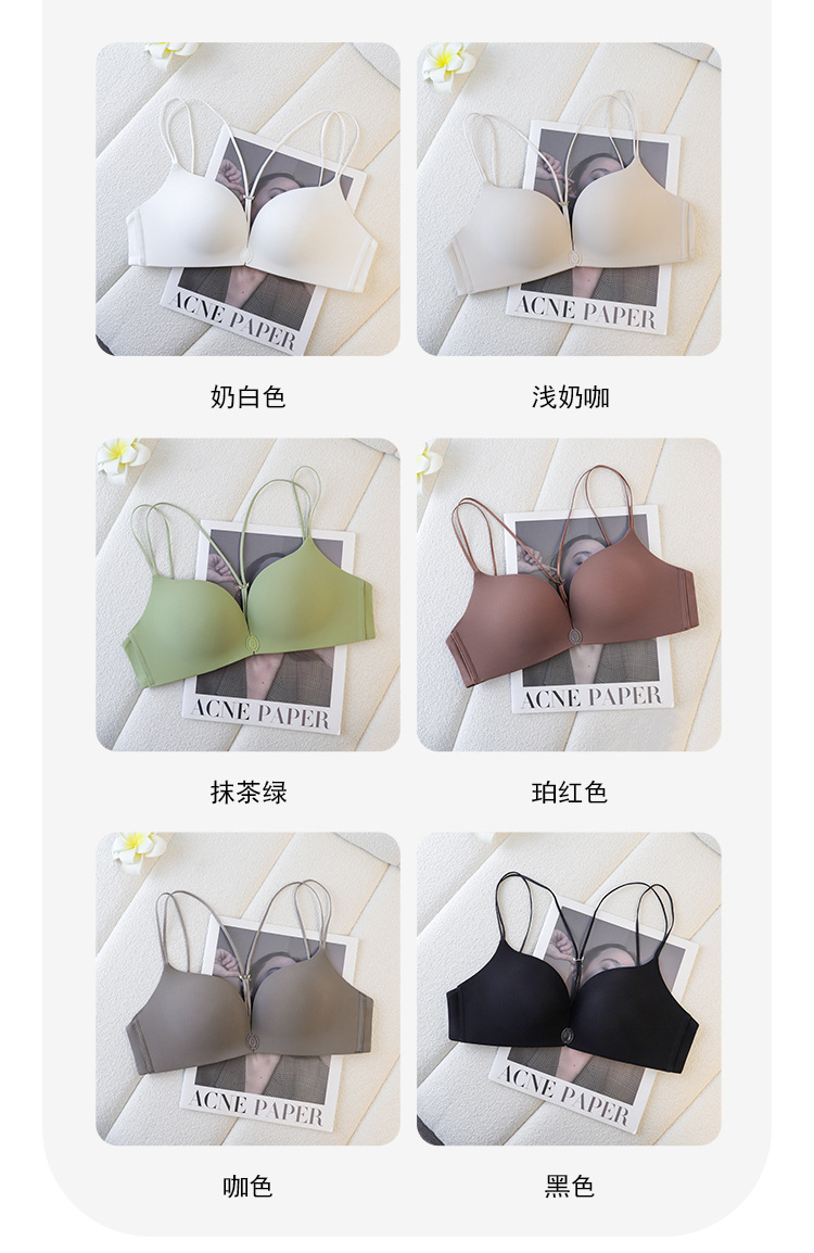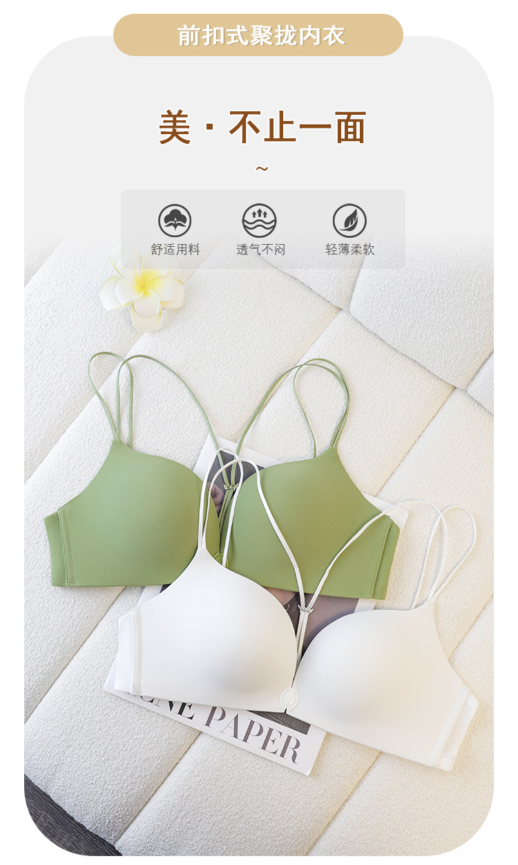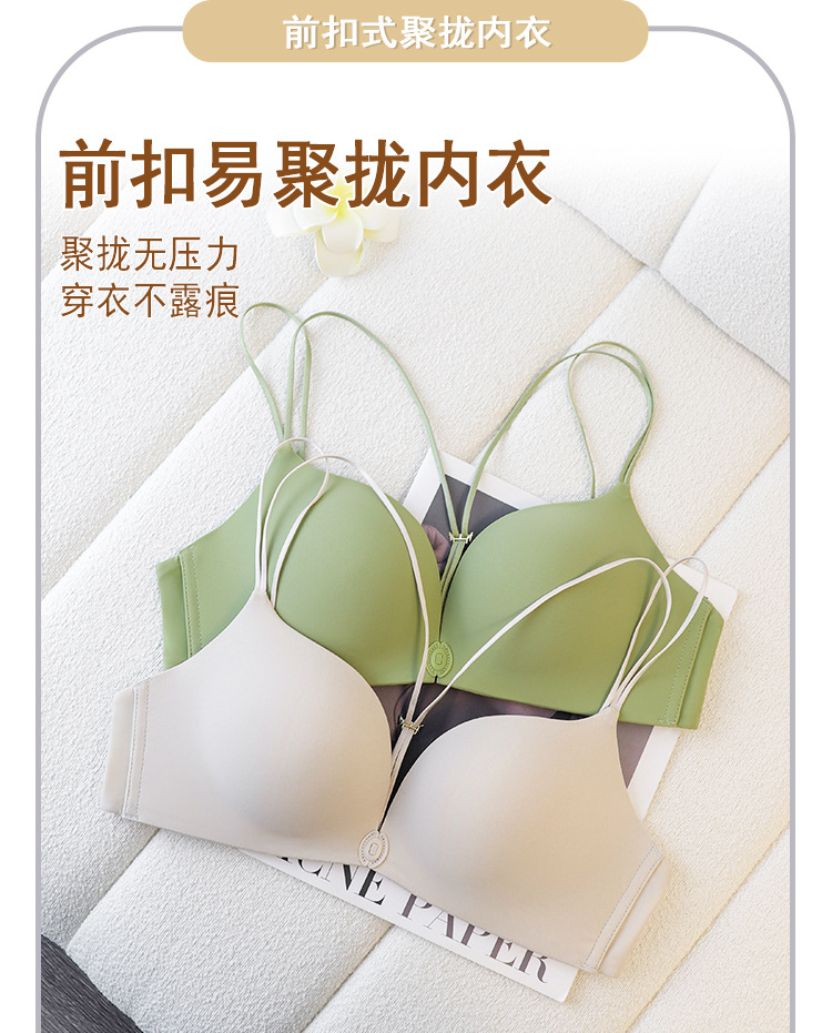 掌优新款深V聚拢隐形美背无痕内衣轻薄镂空前扣式大胸显小文胸