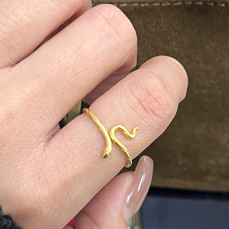 小红书爆款2025年生肖本命年蛇形戒指古法金精致小巧灵蛇开口指环