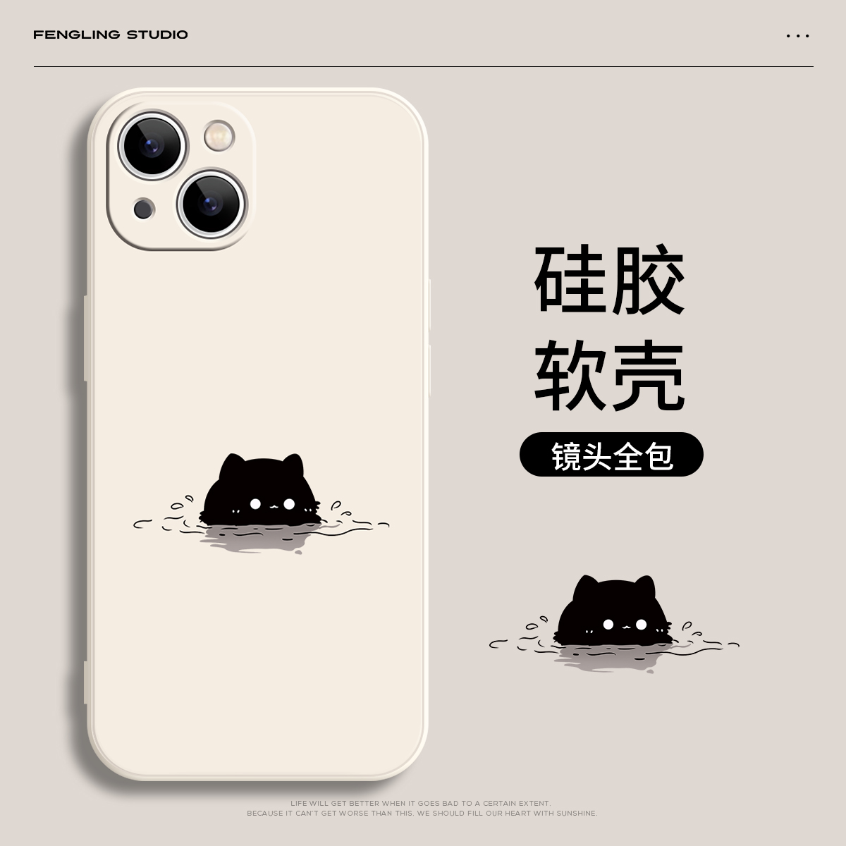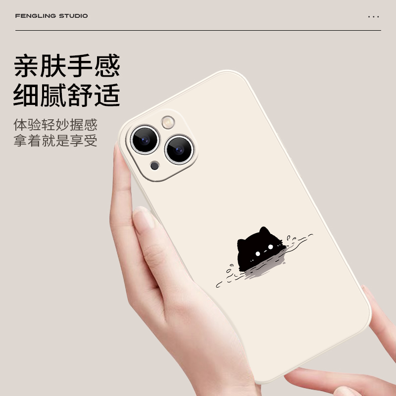 【水中黑猫-古董白】直边液态 硅胶软壳