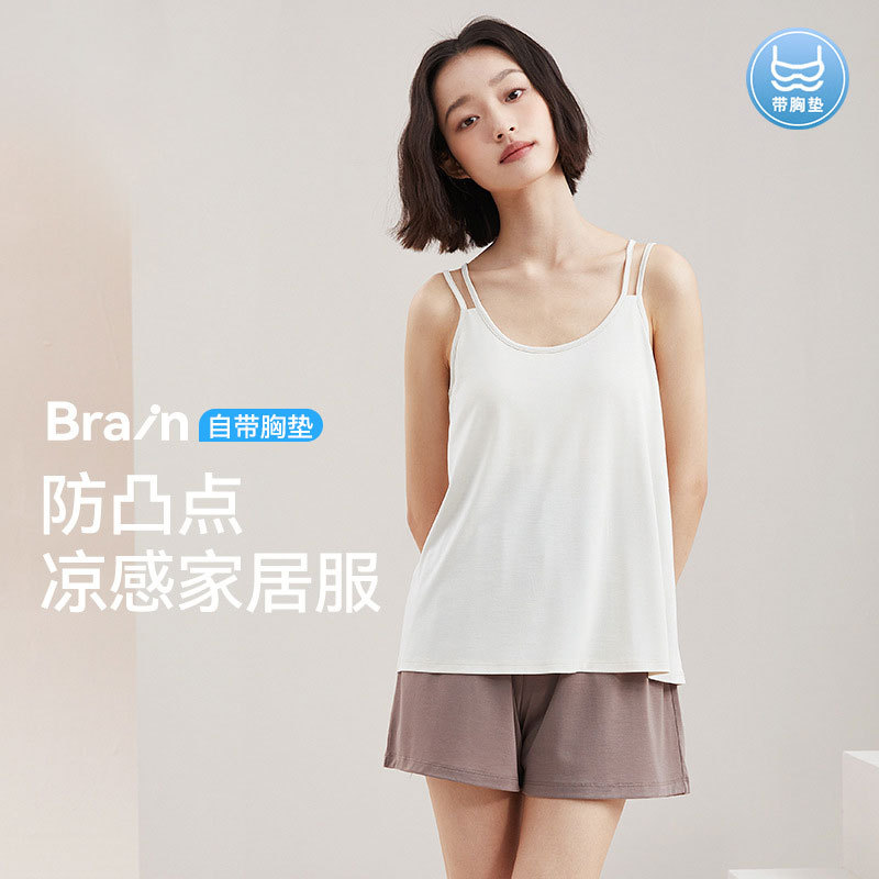 带胸垫小吊带女内搭打底美背背心内衣文胸一体宽松外穿家居服上衣