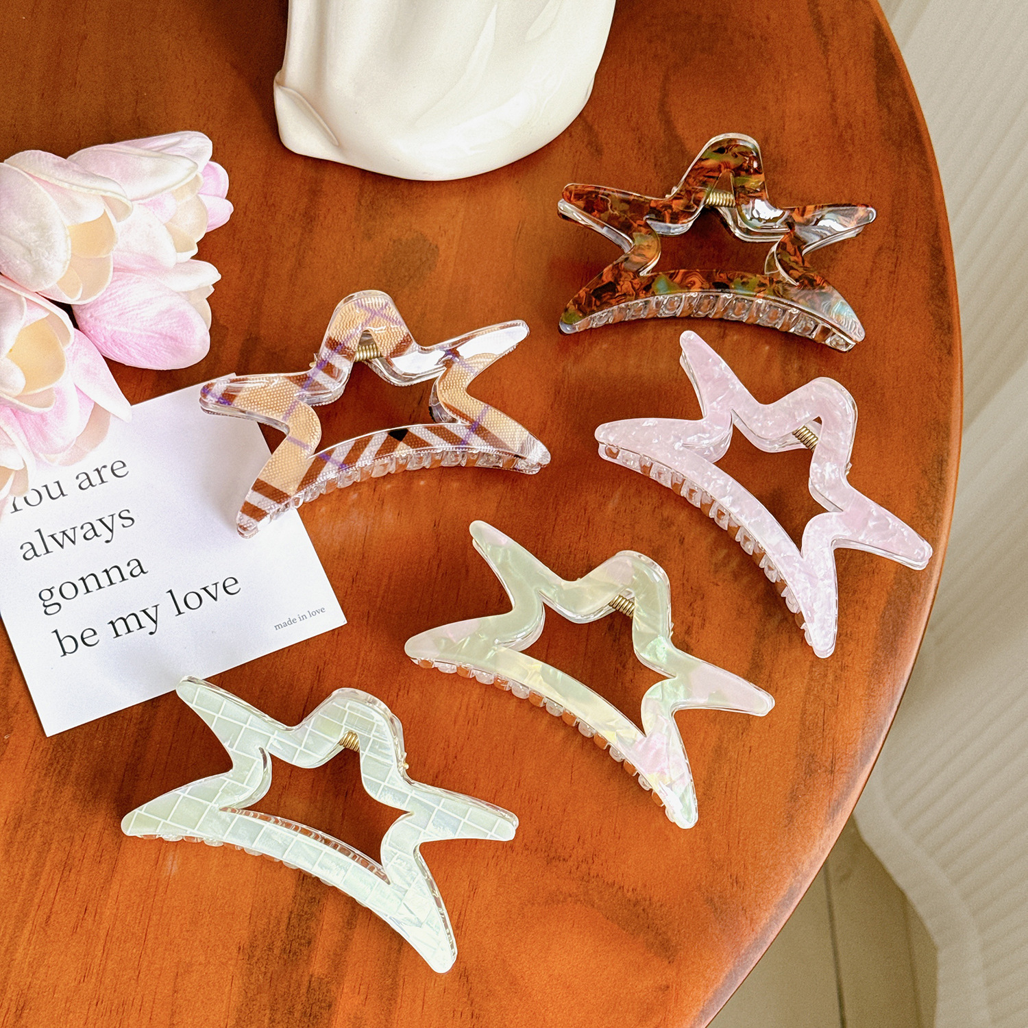 韩版百搭醋酸星星抓夹大号马尾盘发夹后脑勺高级感鲨鱼夹