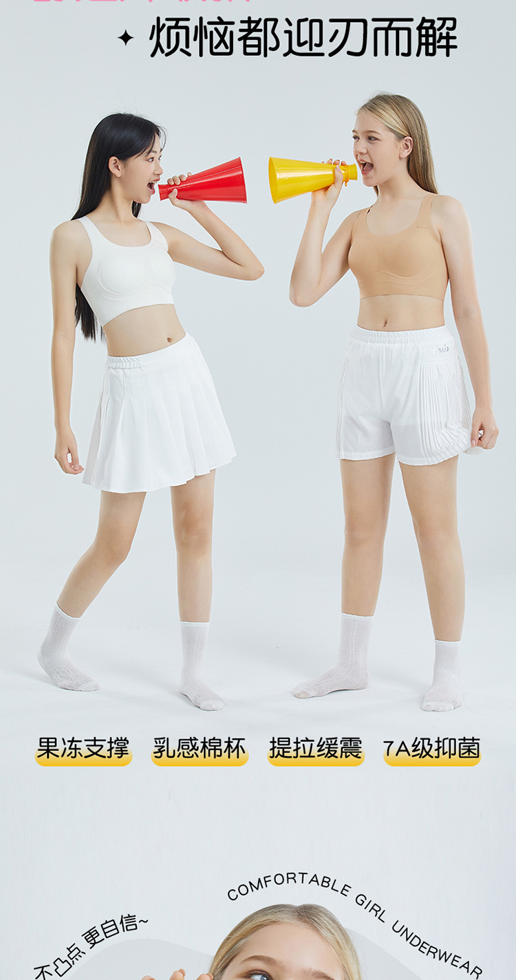 桑蚕丝少女内衣运动文胸防震跑步发育期初高中学生半固定杯背心