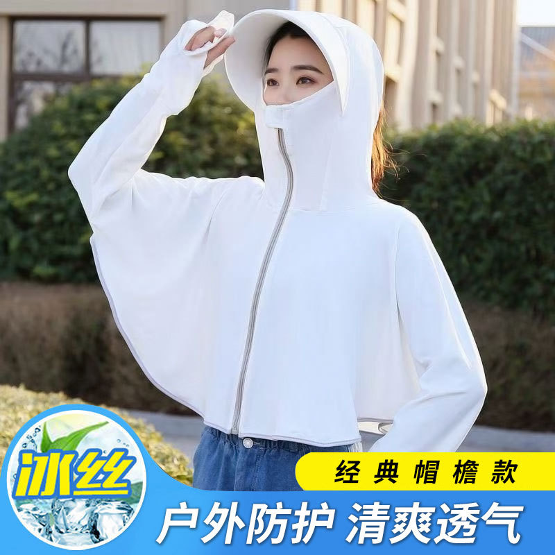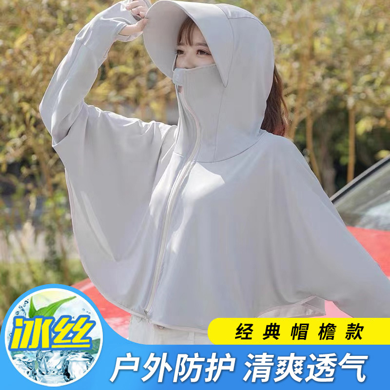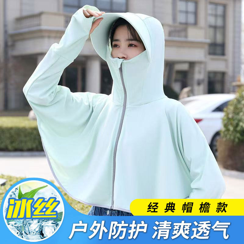 披肩罩衫防晒衣女夏季薄款冰丝大帽檐防晒外套透气瑜伽撞色防晒服