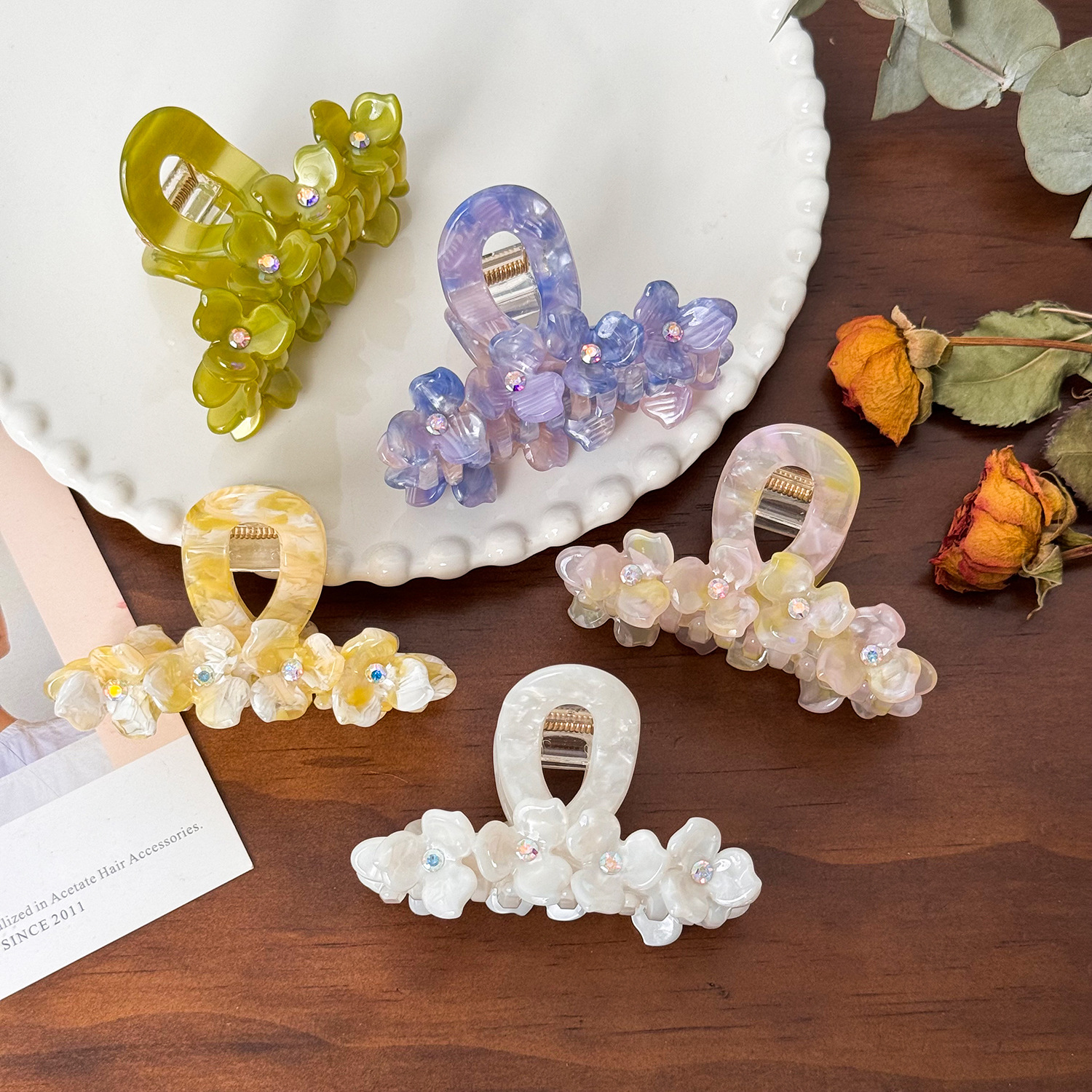 醋酸板材花朵抓夹高级感镶钻发夹中号盘发鲨鱼夹百搭发饰