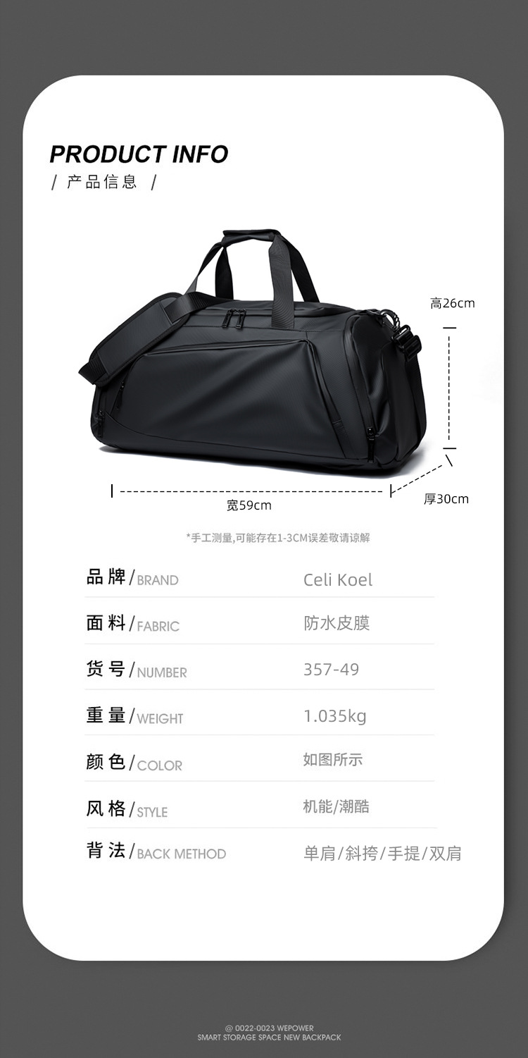 大容量背包防水双肩包干湿运动分离游泳健身包收纳手提行李包