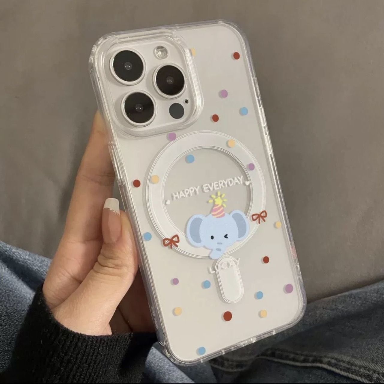 波点小象适用苹果15/14磁吸透明手机壳iPhone13/12ProMax软边11女