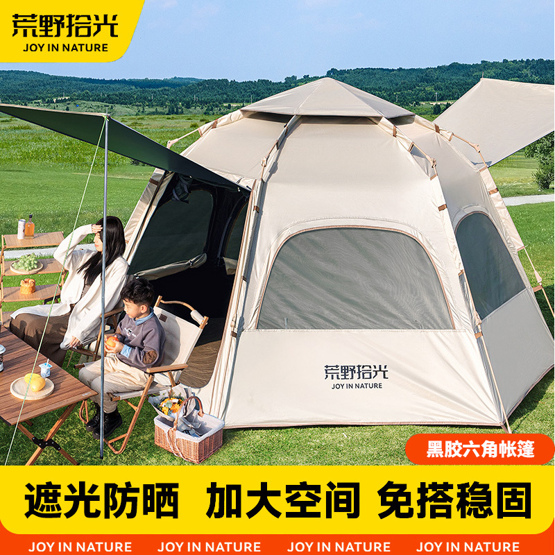 荒野拾光帐篷户外露营折叠便携式野营过夜装备全套黑胶加厚防雨