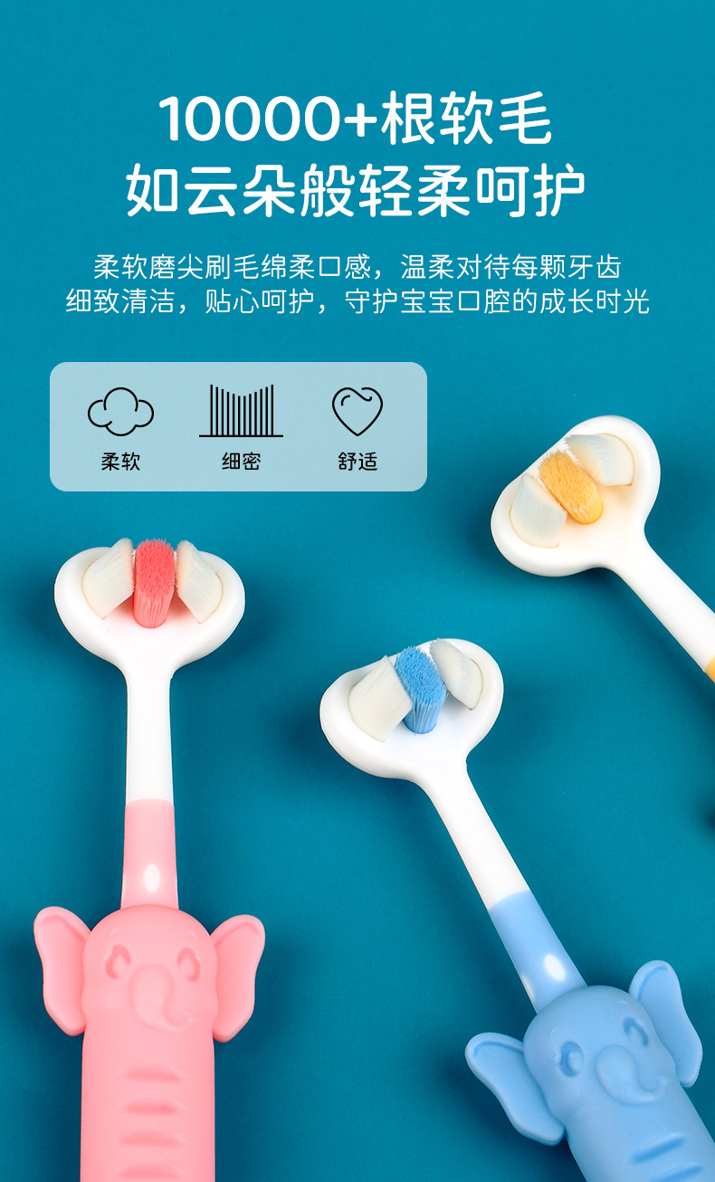 儿童三面刷牙刷可爱大象多巴胺马卡龙色儿童软毛牙刷3-12岁牙具