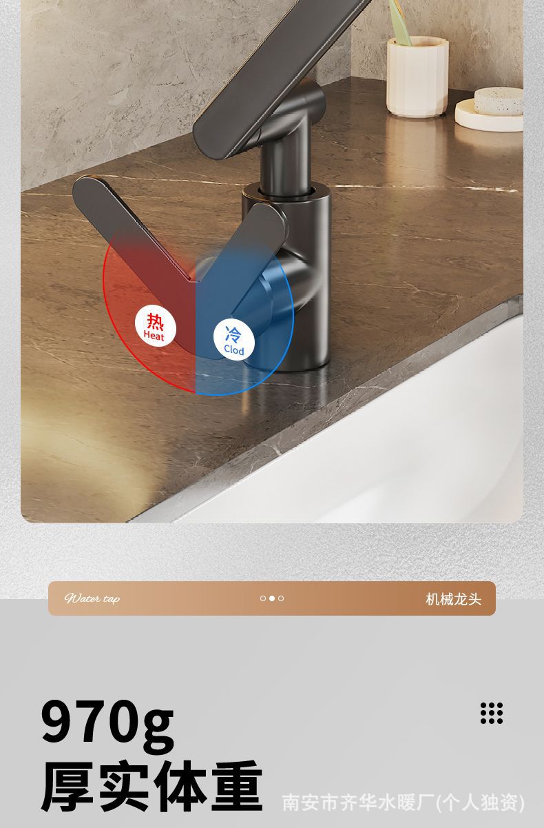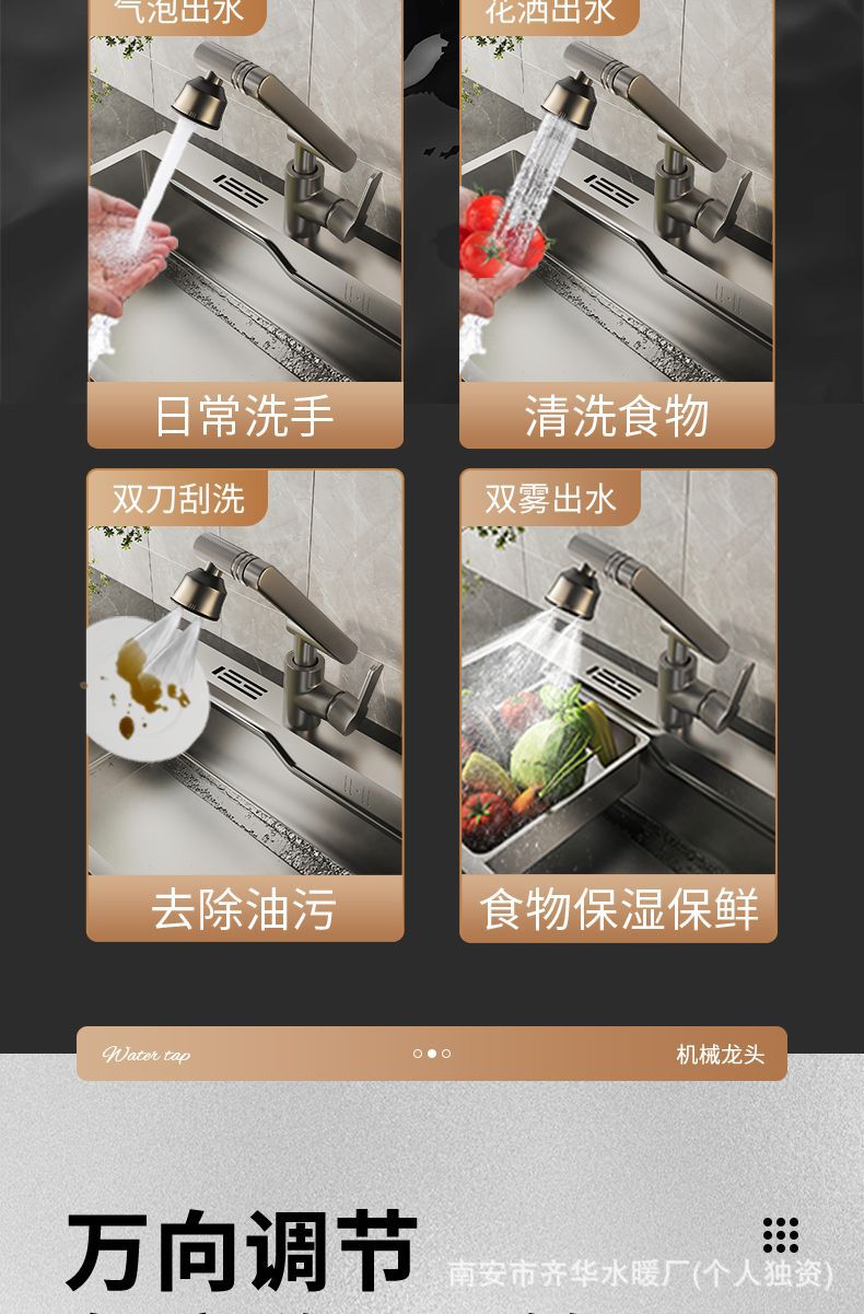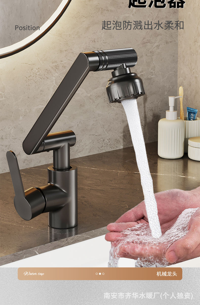 全铜机械臂水龙头冷热水双用浴室厨房万向旋转多功能