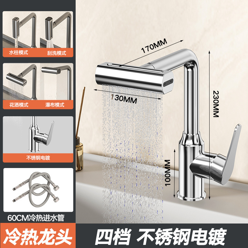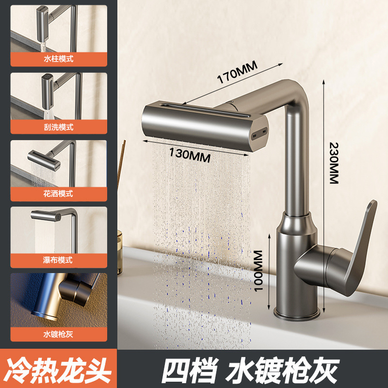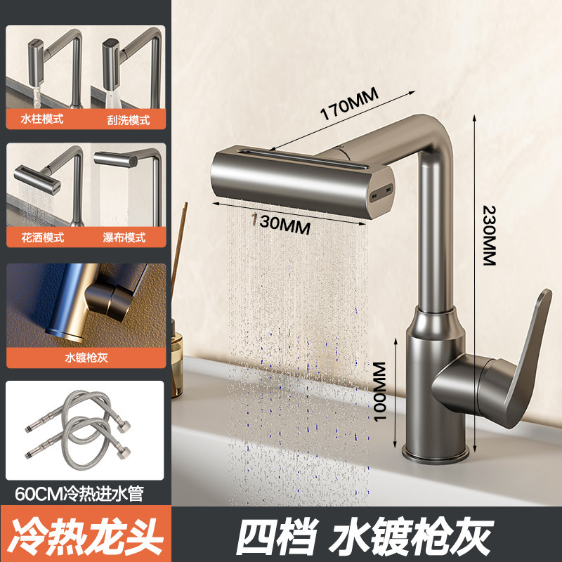 智能瀑布出水面盆洗脸盆水龙头冷热洗手盆浴室卫生间通用台盆龙头