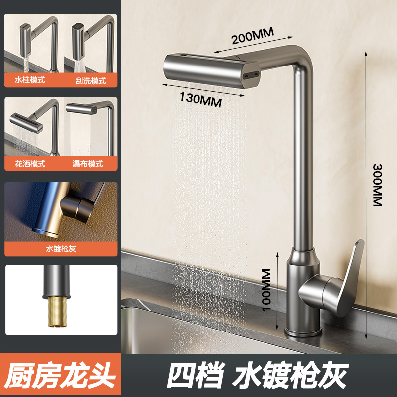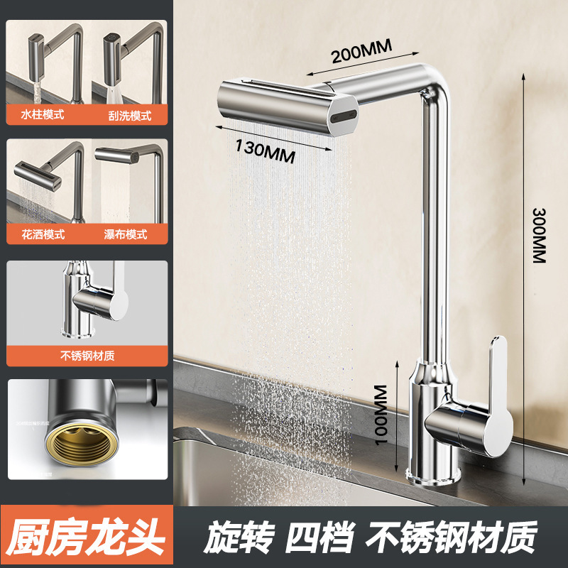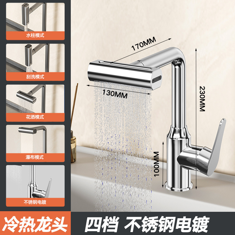 全铜机械臂水龙头冷热水双用浴室厨房万向旋转多功能
