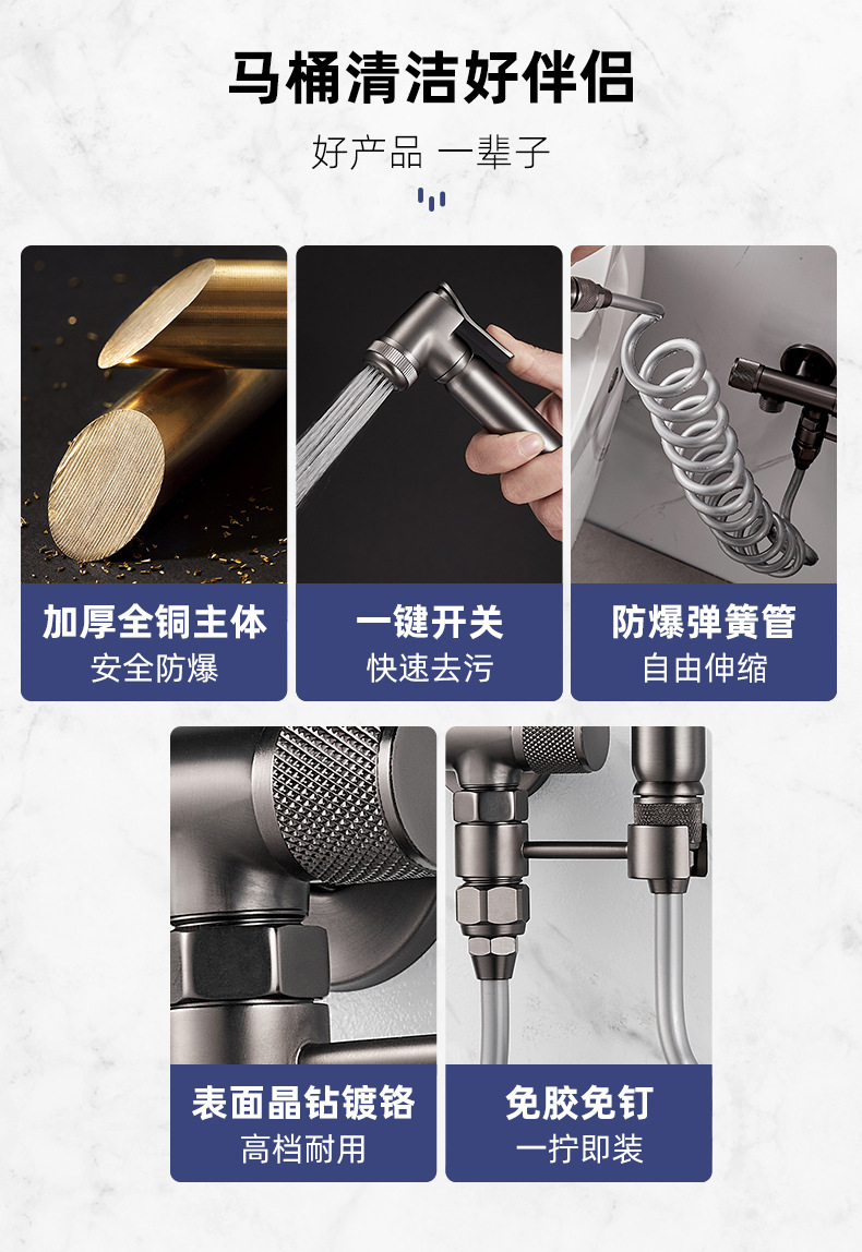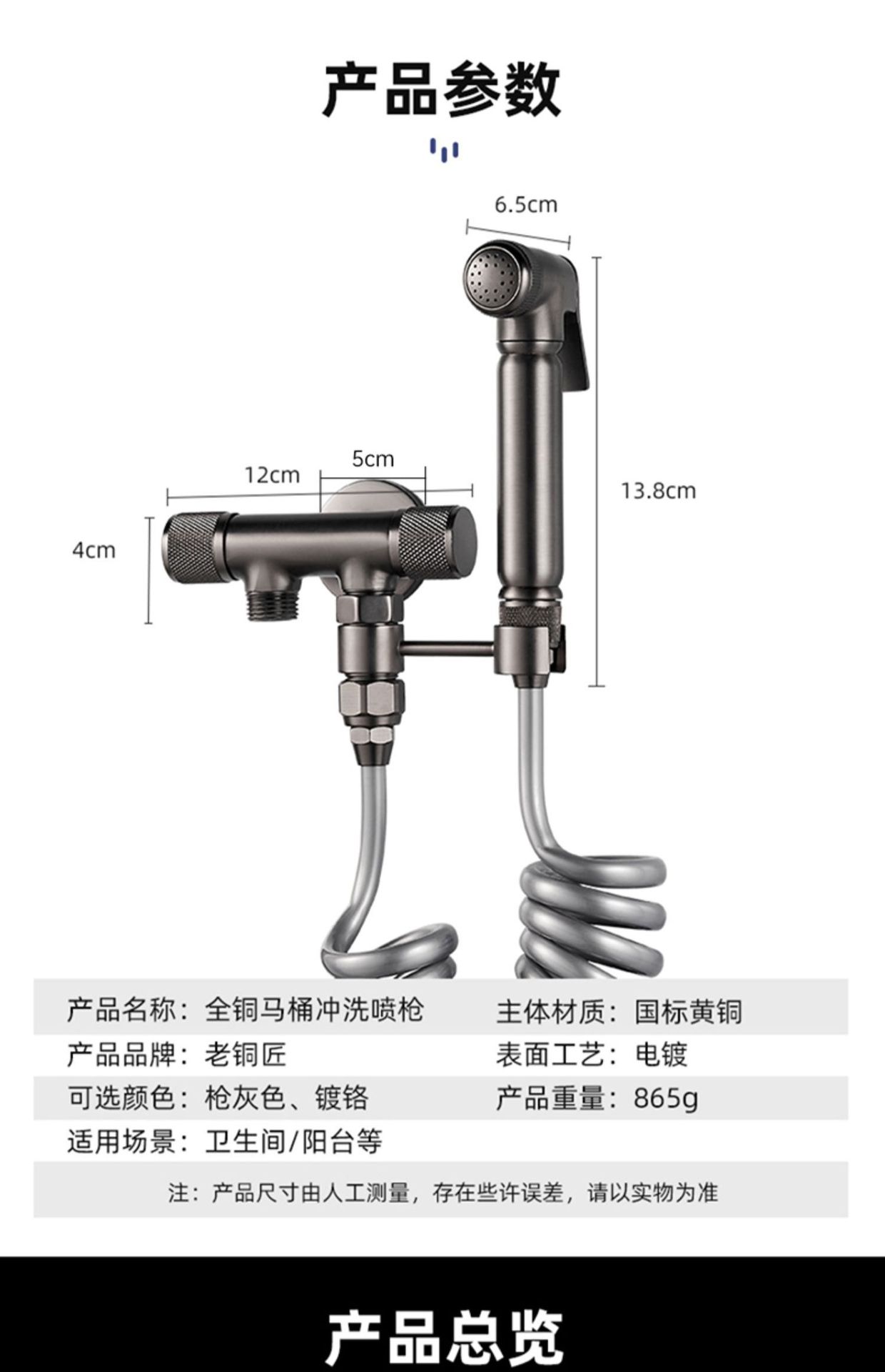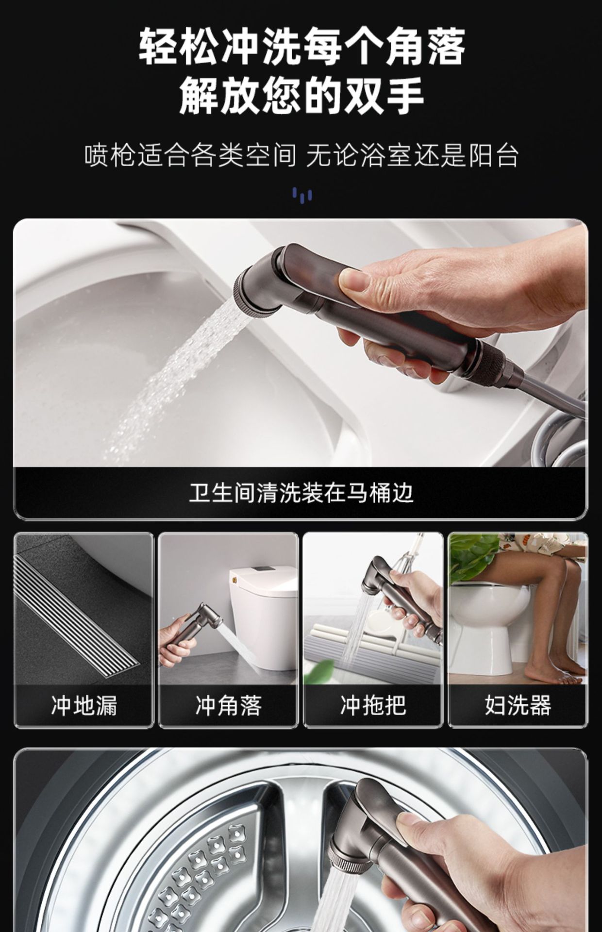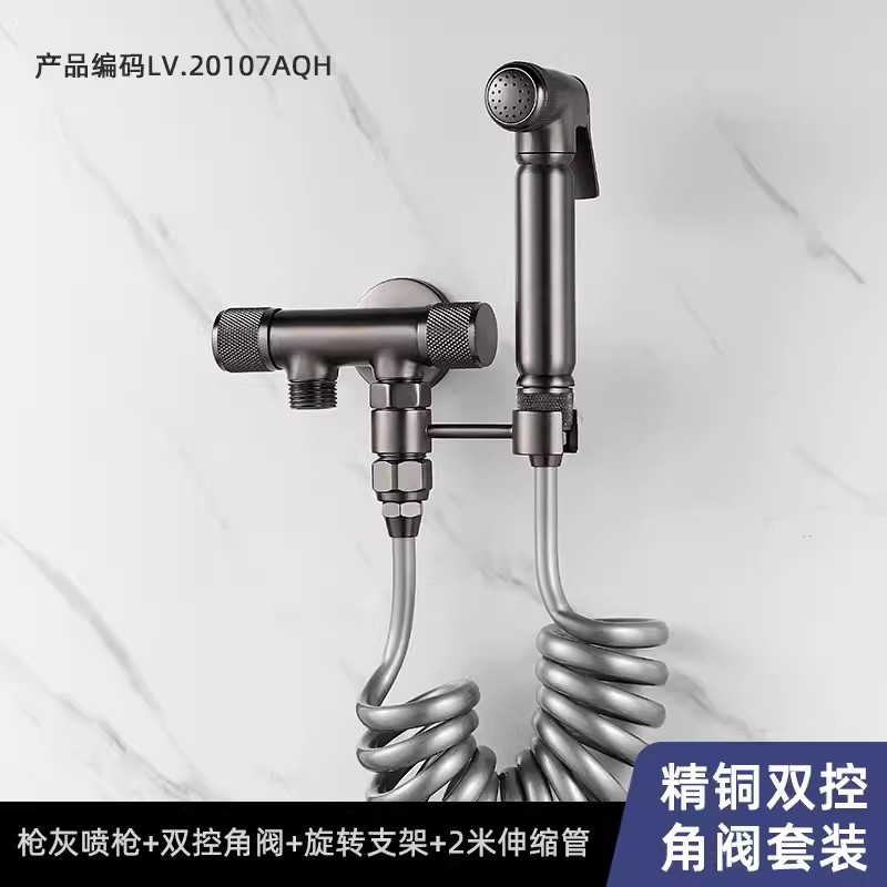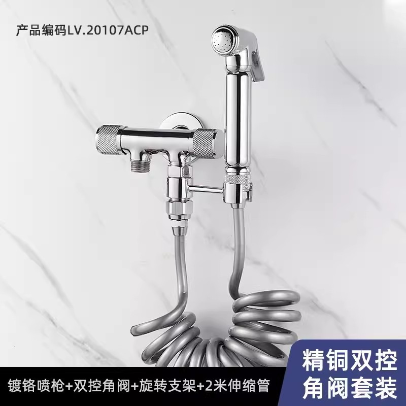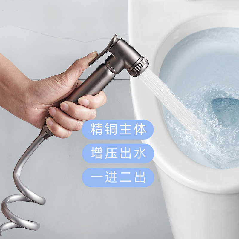 全铜马桶伴侣增压喷枪套装一进二出冲洗卫生间阳台套装妇洗高压枪