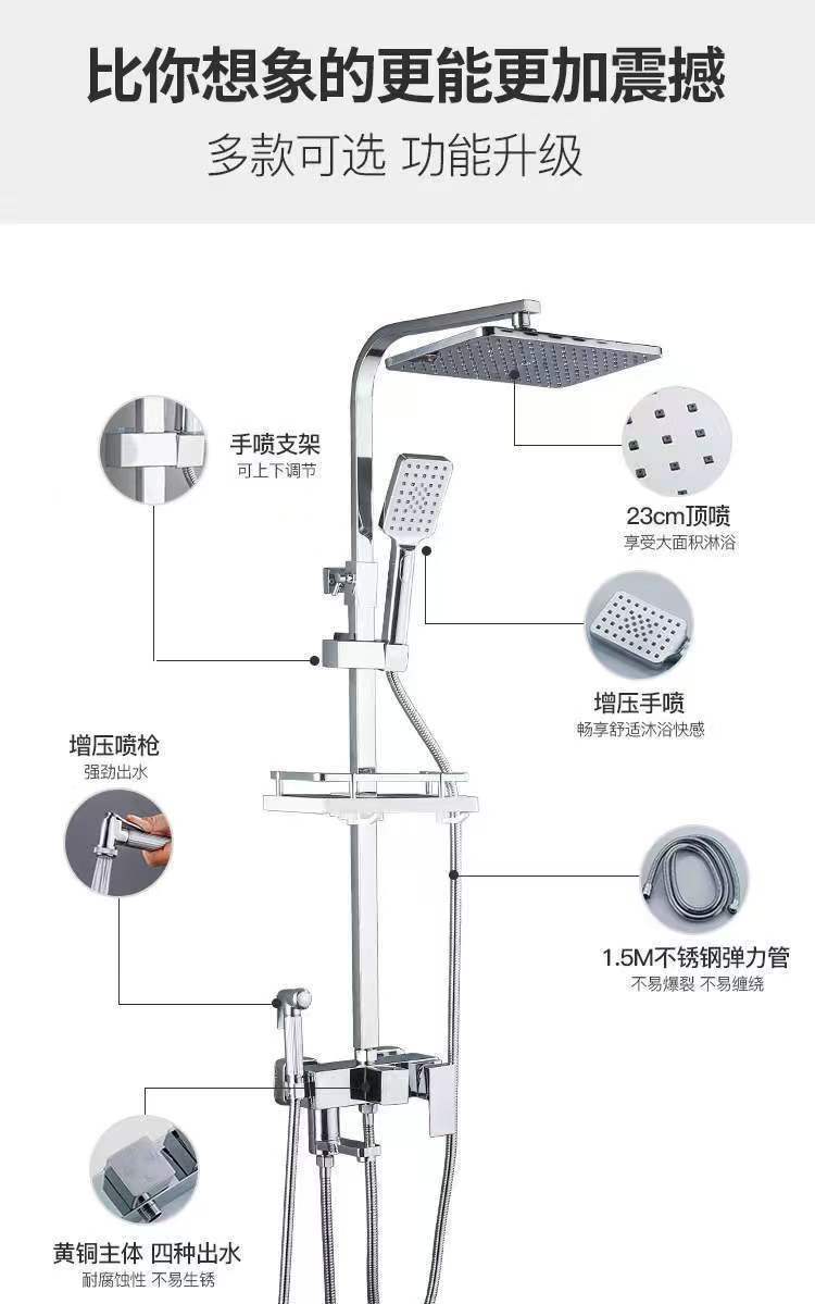 卫浴家用淋浴花洒套装黄铜龙头卫生间挂墙式增压淋雨沐浴喷头