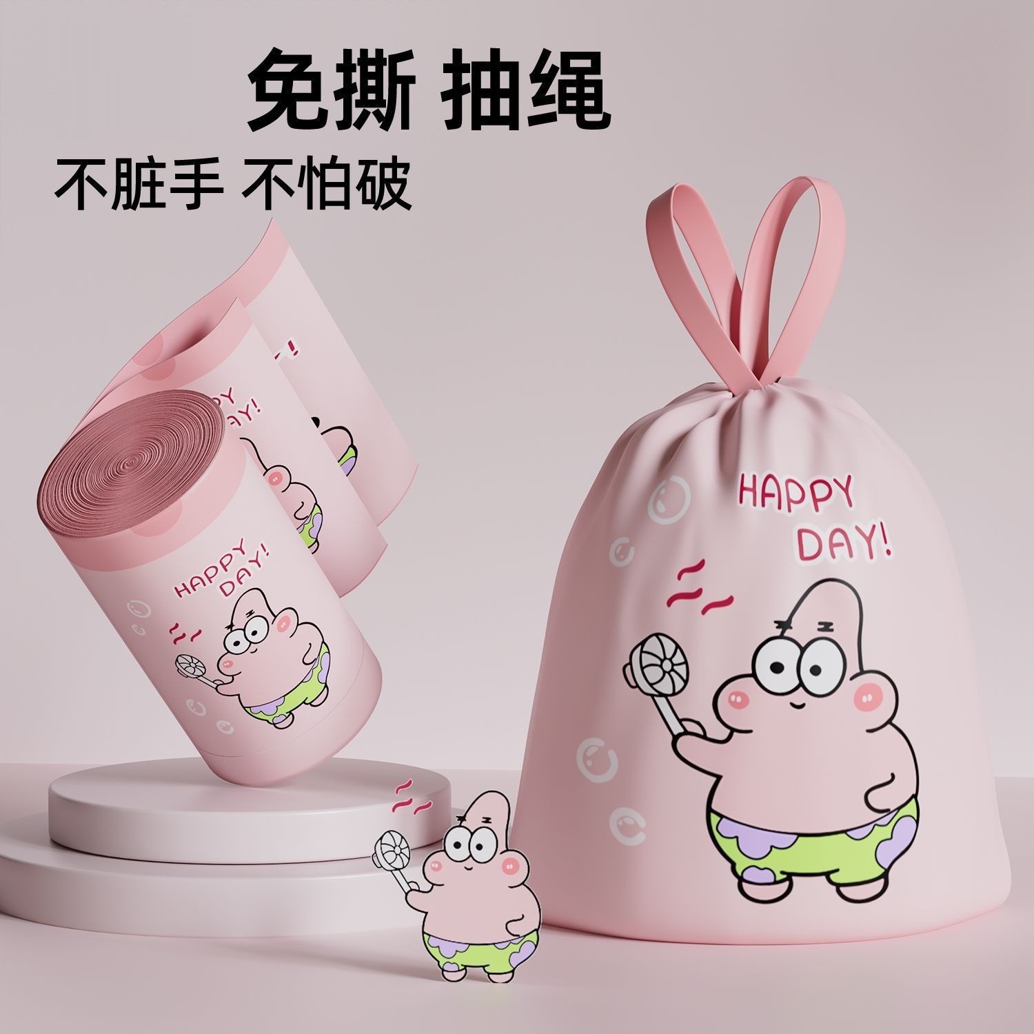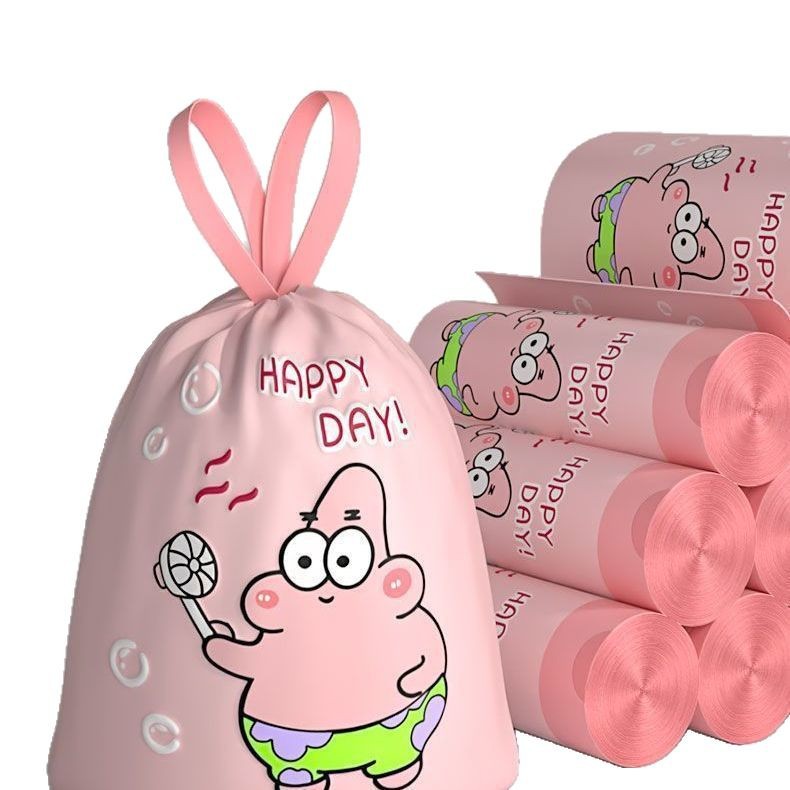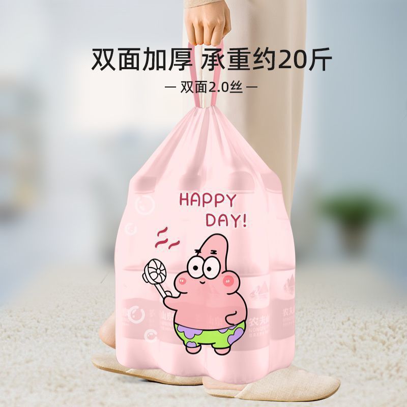 新款派大星免撕抽绳垃圾袋加厚手提塑料袋宿舍厨房自动收口清洁袋