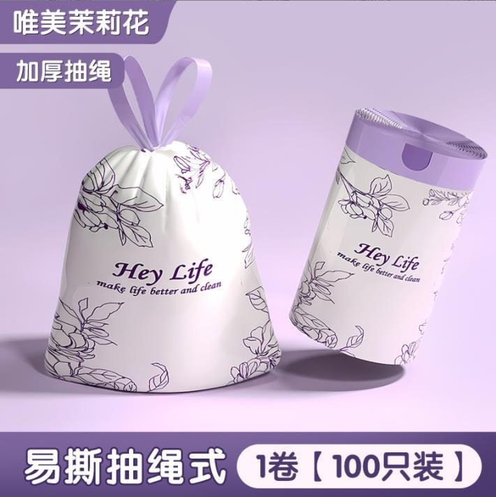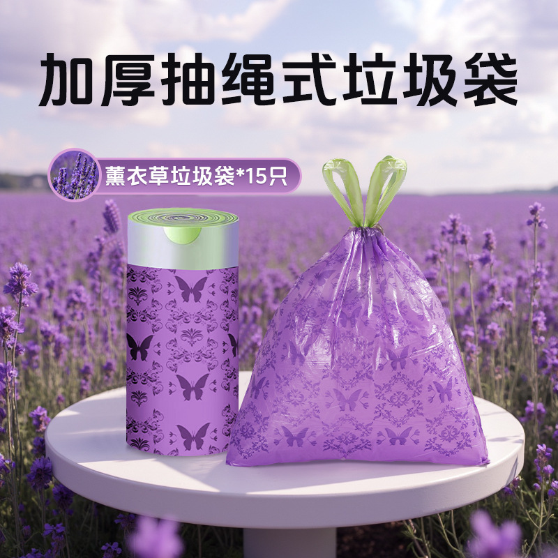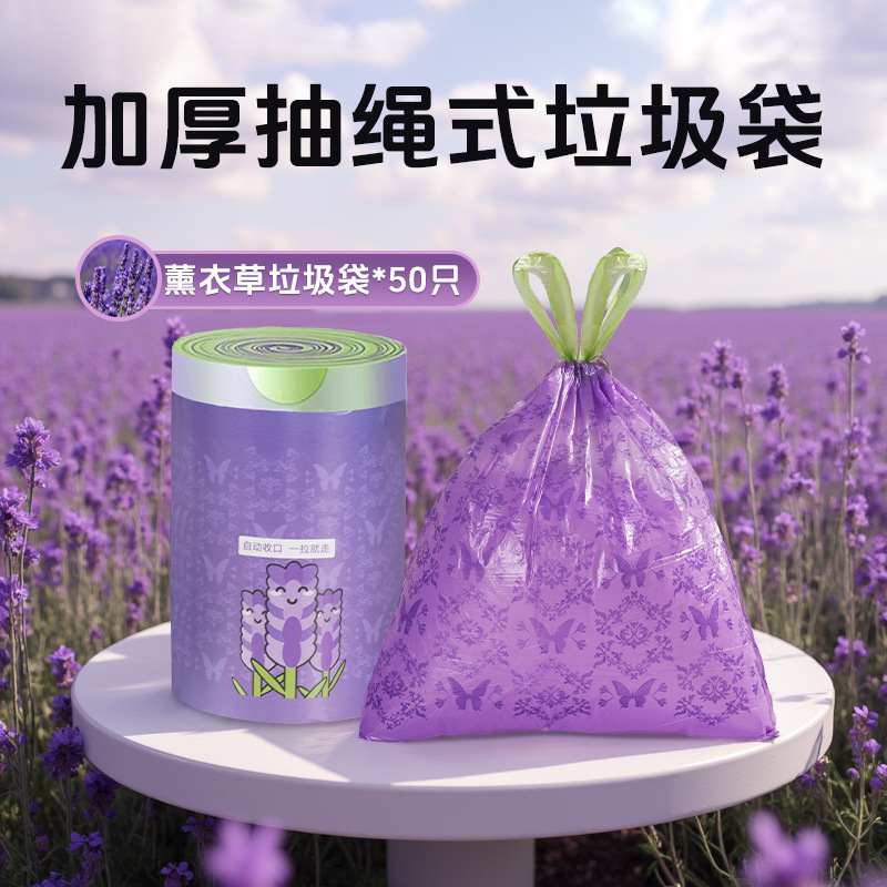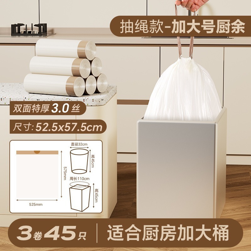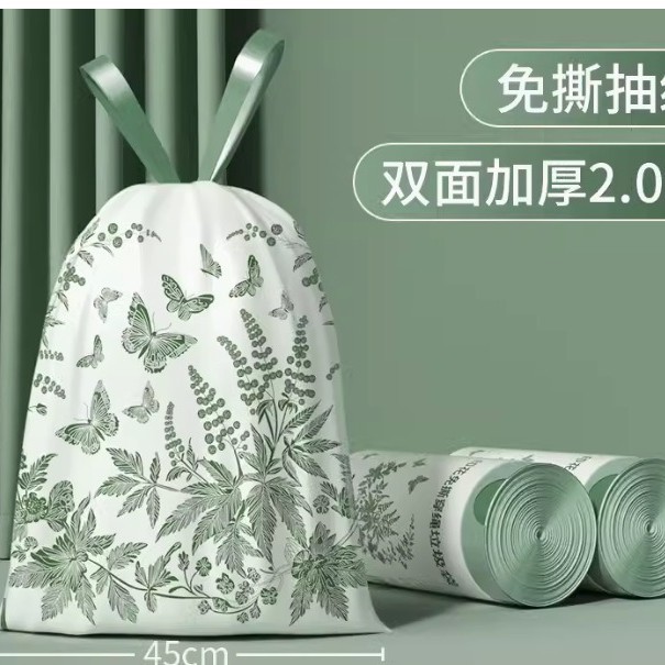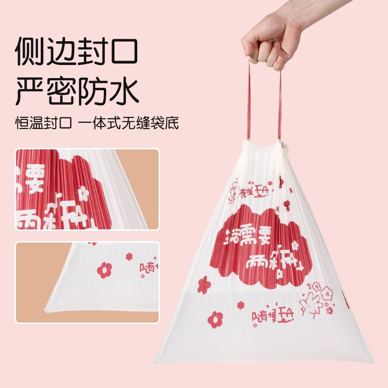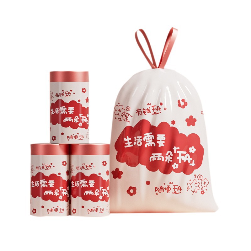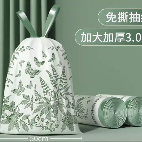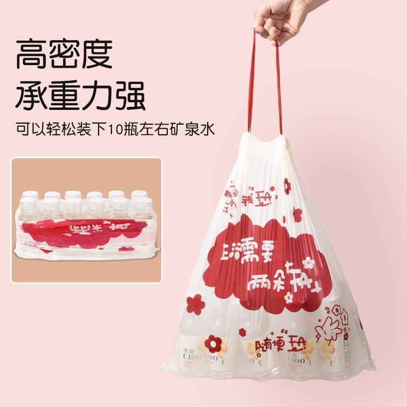 有钱花抽绳式垃圾袋加厚特厚不易破家用厨房印花大号手提式垃圾袋