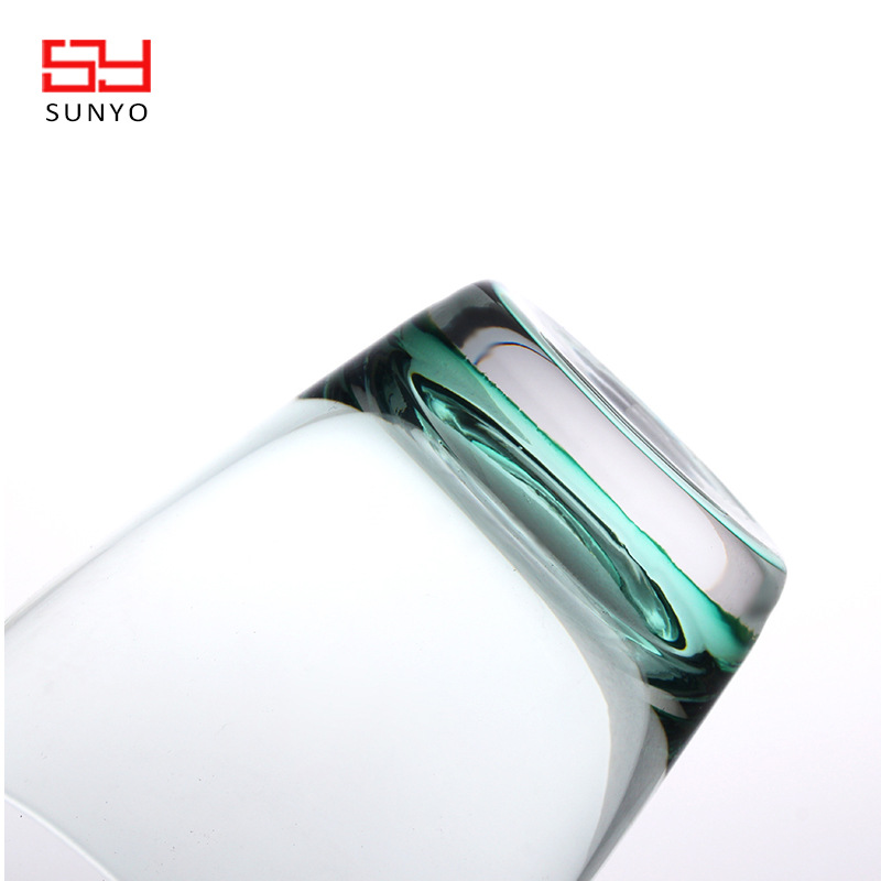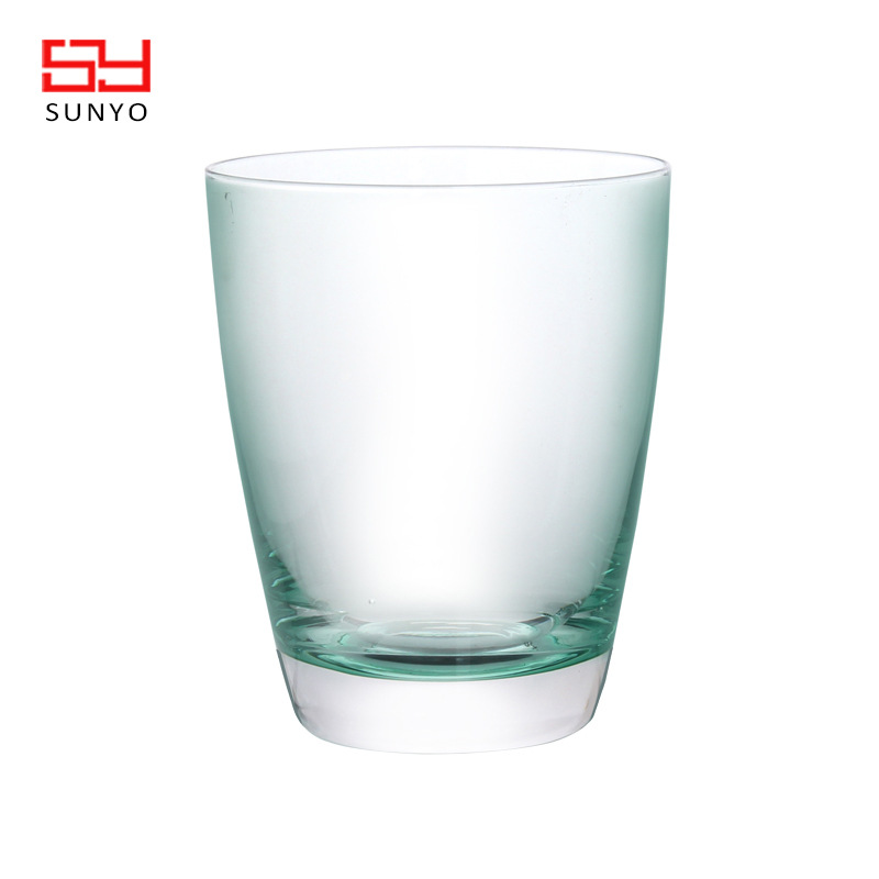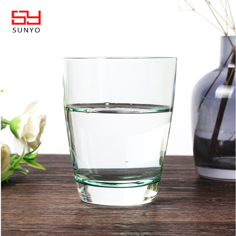 双色套料厚底玻璃杯人工吹制家用厨房日用透明玻璃水杯
