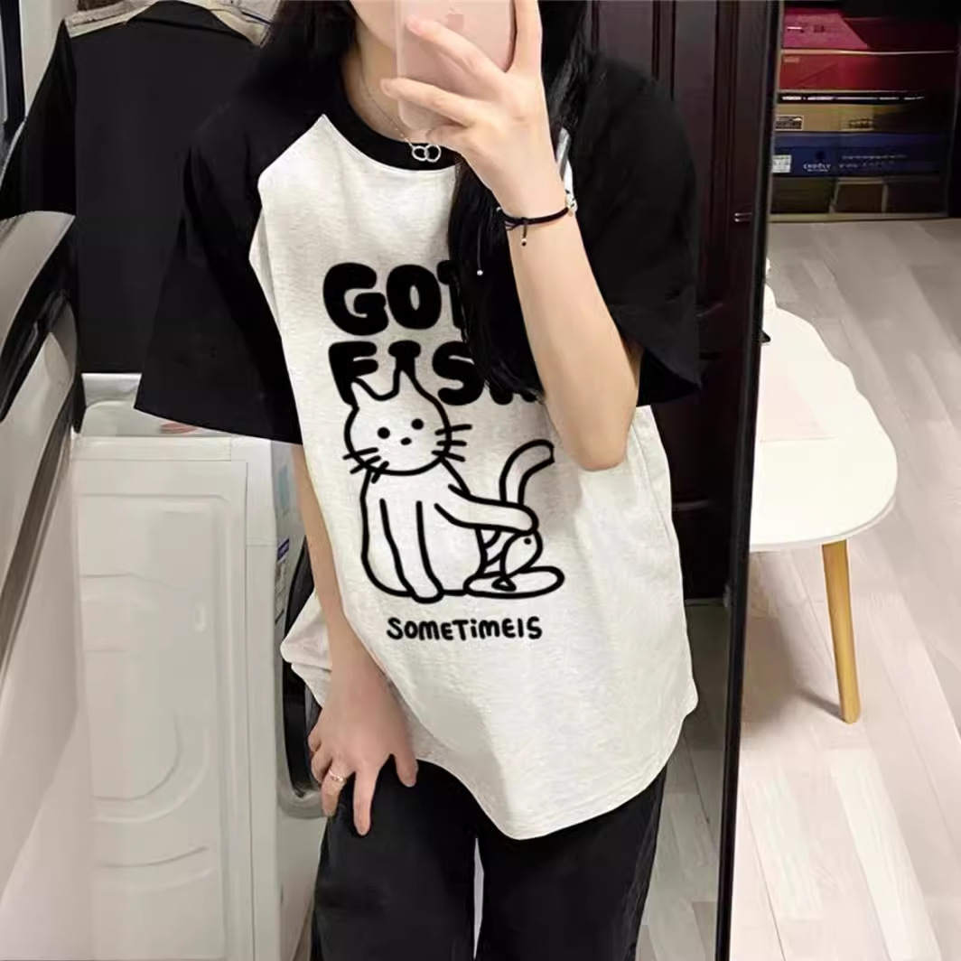 美式oversize插肩短袖t恤女夏季新款复古国潮宽松情侣百搭上衣ins